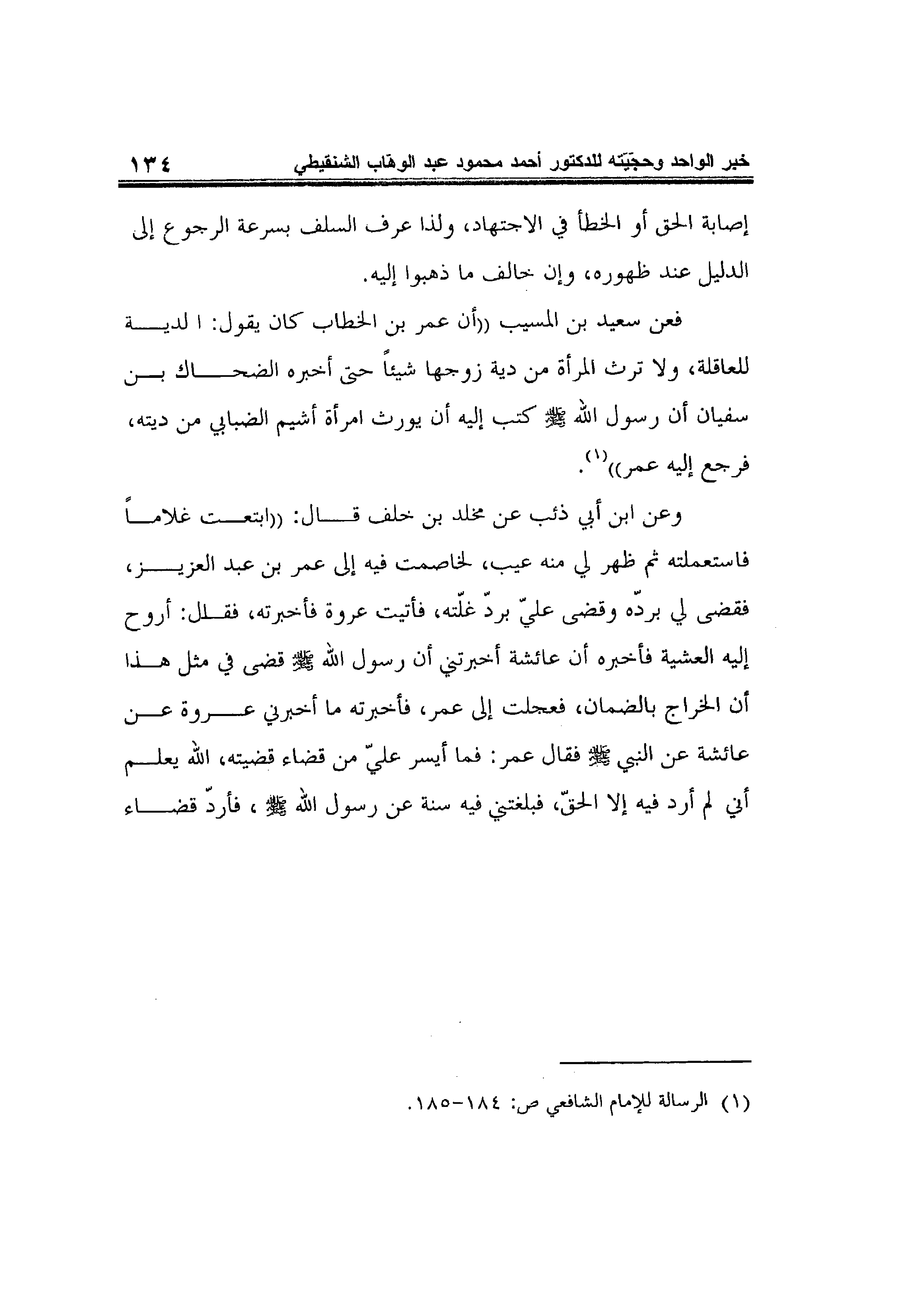 1 الرسالة للإمام الشافعي ص: 184-185.