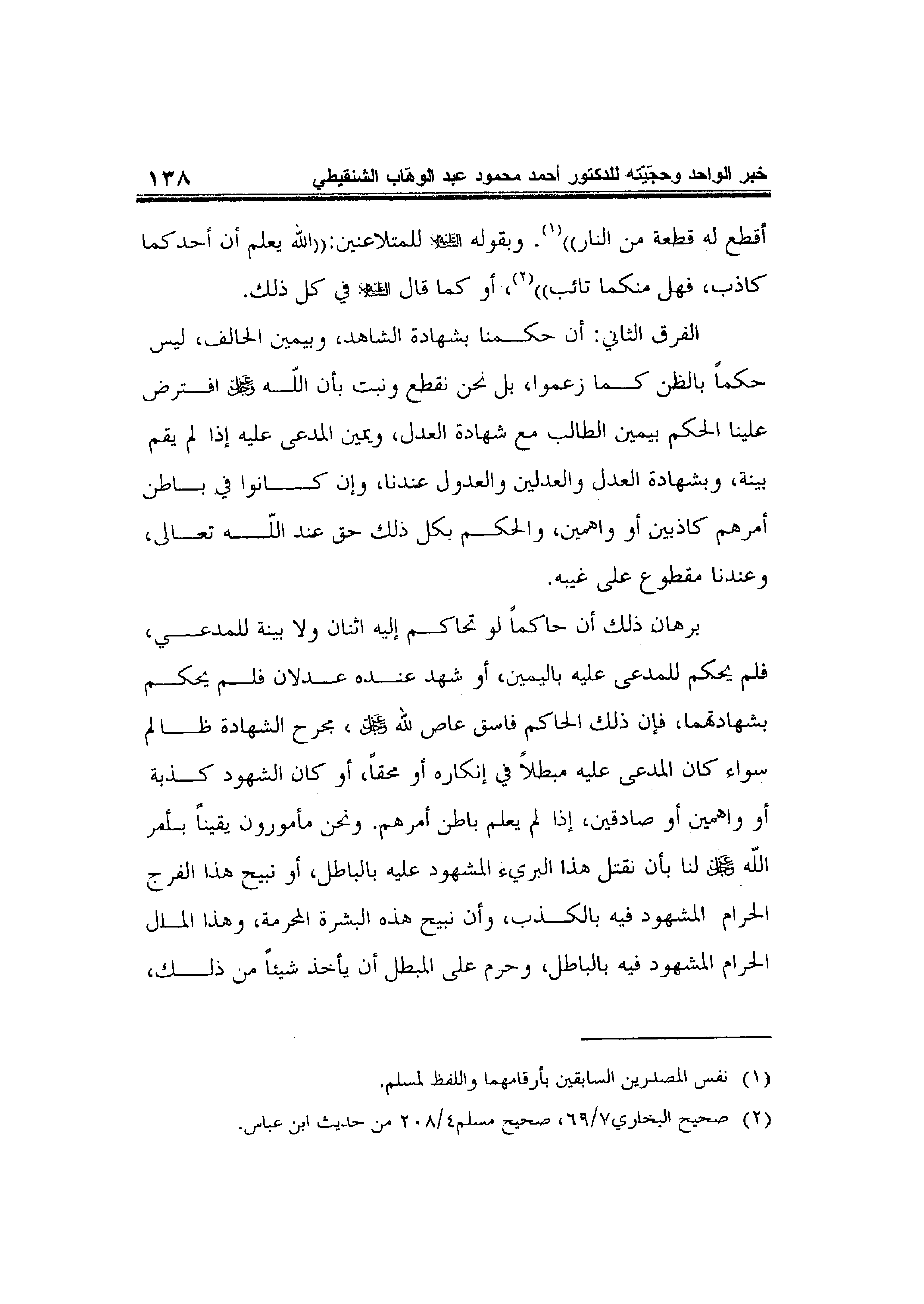 أقطع له قطعة من النار" 1. وبقوله عليه السلام للمتلاعنين: "الله يعلم أن أحدكما كاذب، فهل منكما تائب" 2، أو كما قال عليه السلام في كل ذلك.