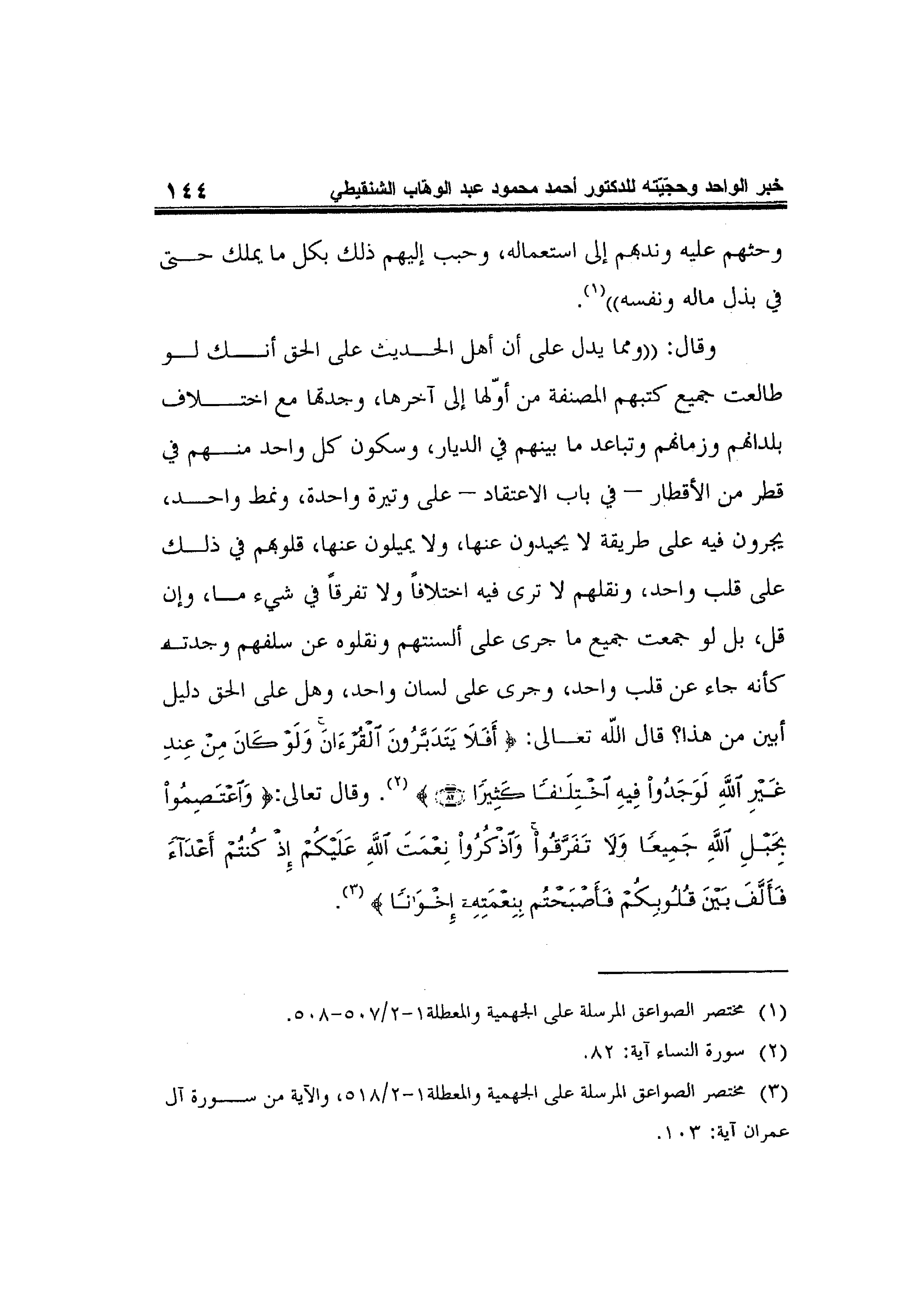 3 مختصر الصواعق المرسلة على الجهمية والمعطلة1-2/518، والآية من سورة آل عمران آية: 103.