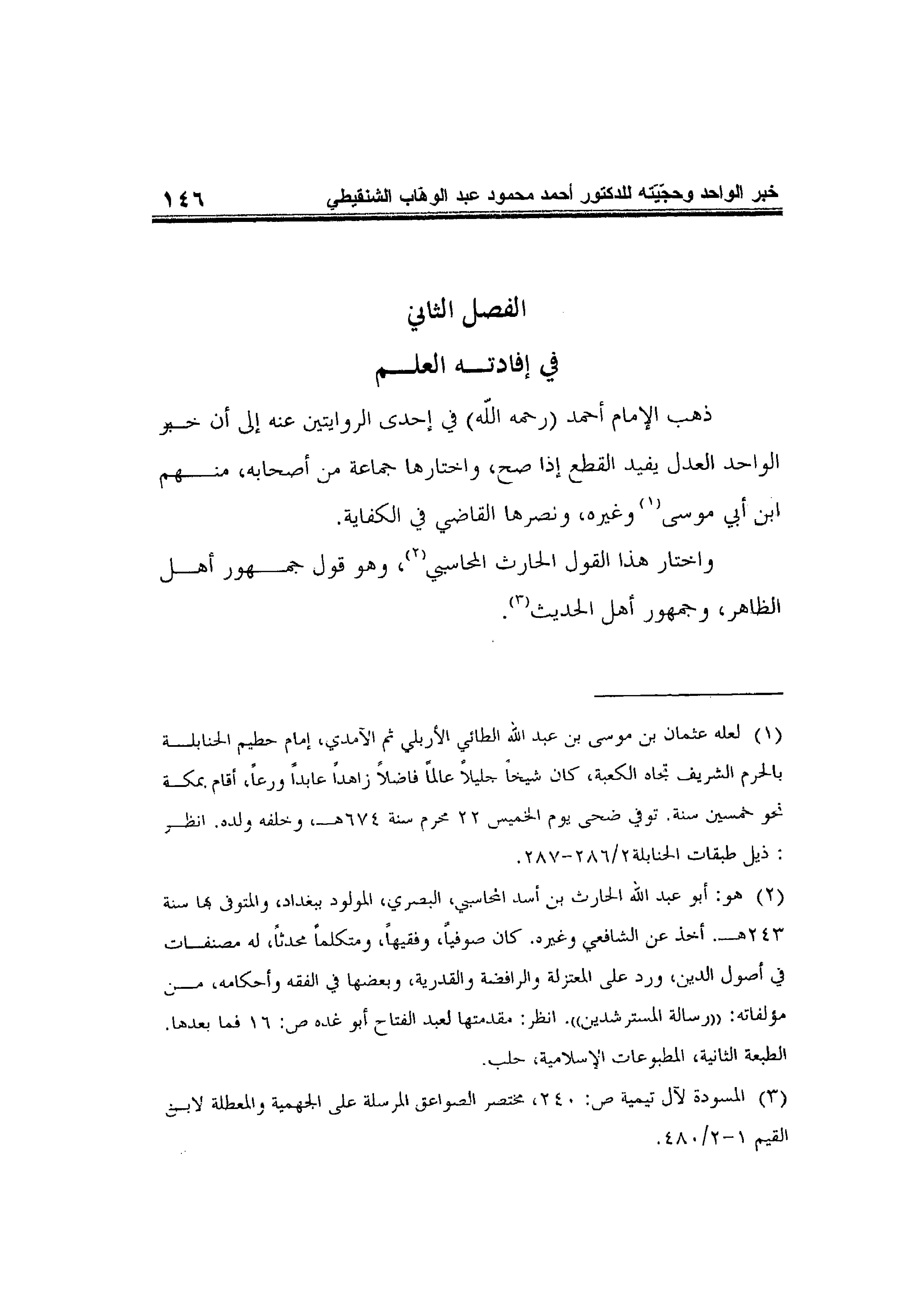 الفصل الثاني: في إفادته العلم
