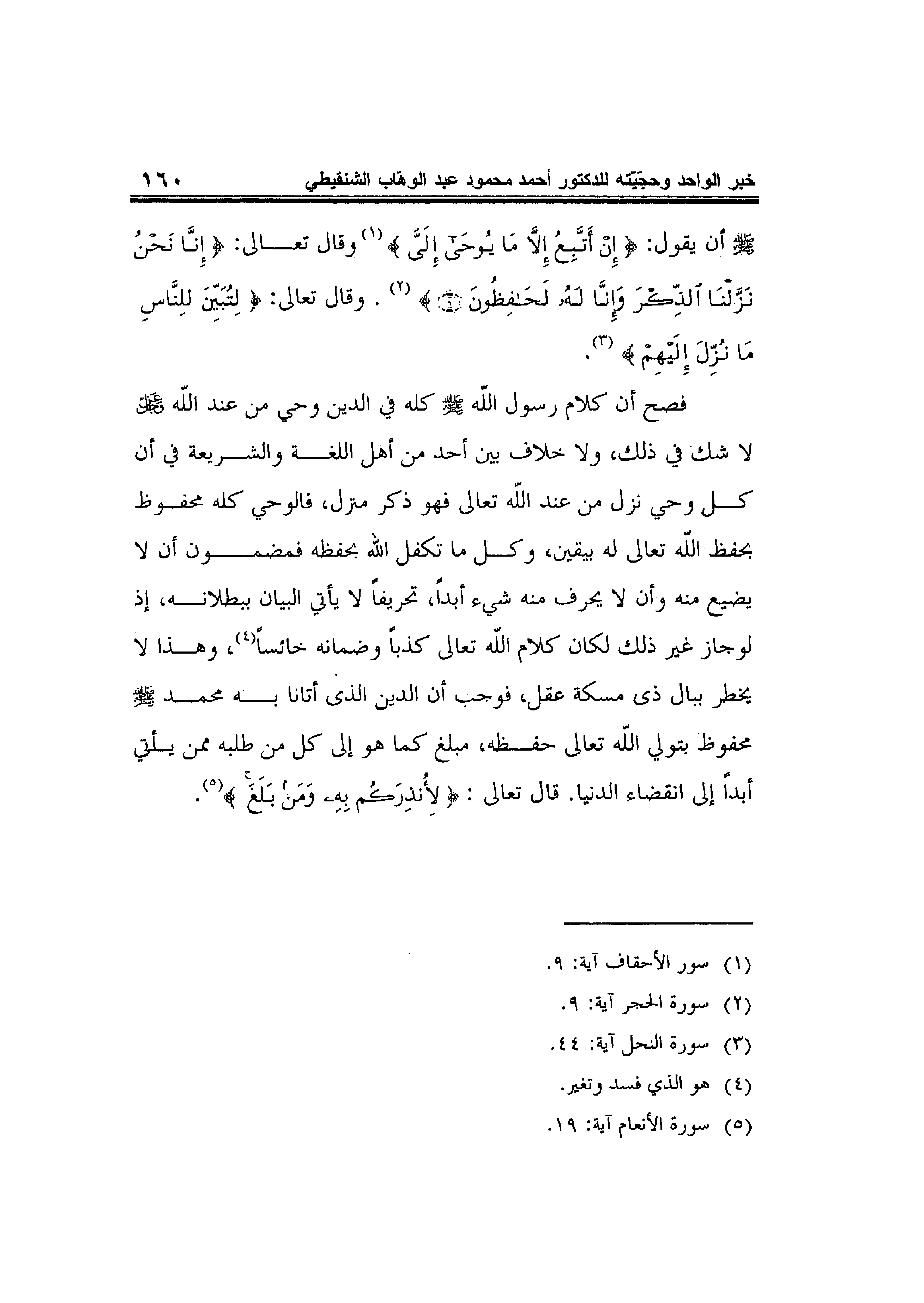 صلى الله عليه وسلم أن يقول: {إِنْ أَتَّبِعُ إِلاَّ مَا يُوحَى إِلَيّ} 1 وقال تعالى: {إِنَّا نَحْنُ نَزَّلْنَا الذِّكْرَ وَإِنَّا لَهُ لَحَافِظُونَ} 2. وقال تعالى: {لِتُبَيِّنَ لِلنَّاسِ مَا نُزِّلَ إِلَيْهِمْ} 3.