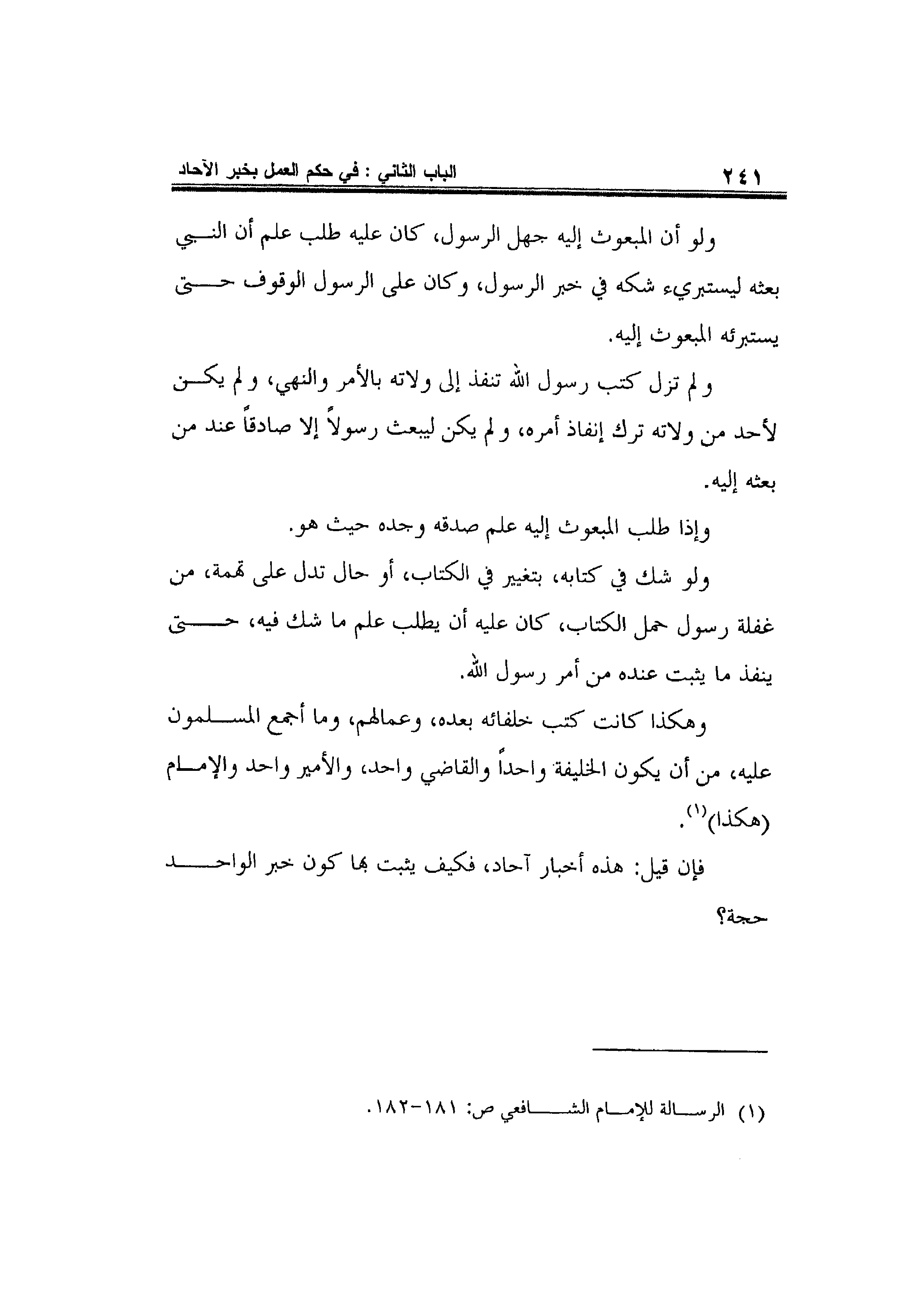 1 الرسالة للإمام الشافعي ص: 181-182.