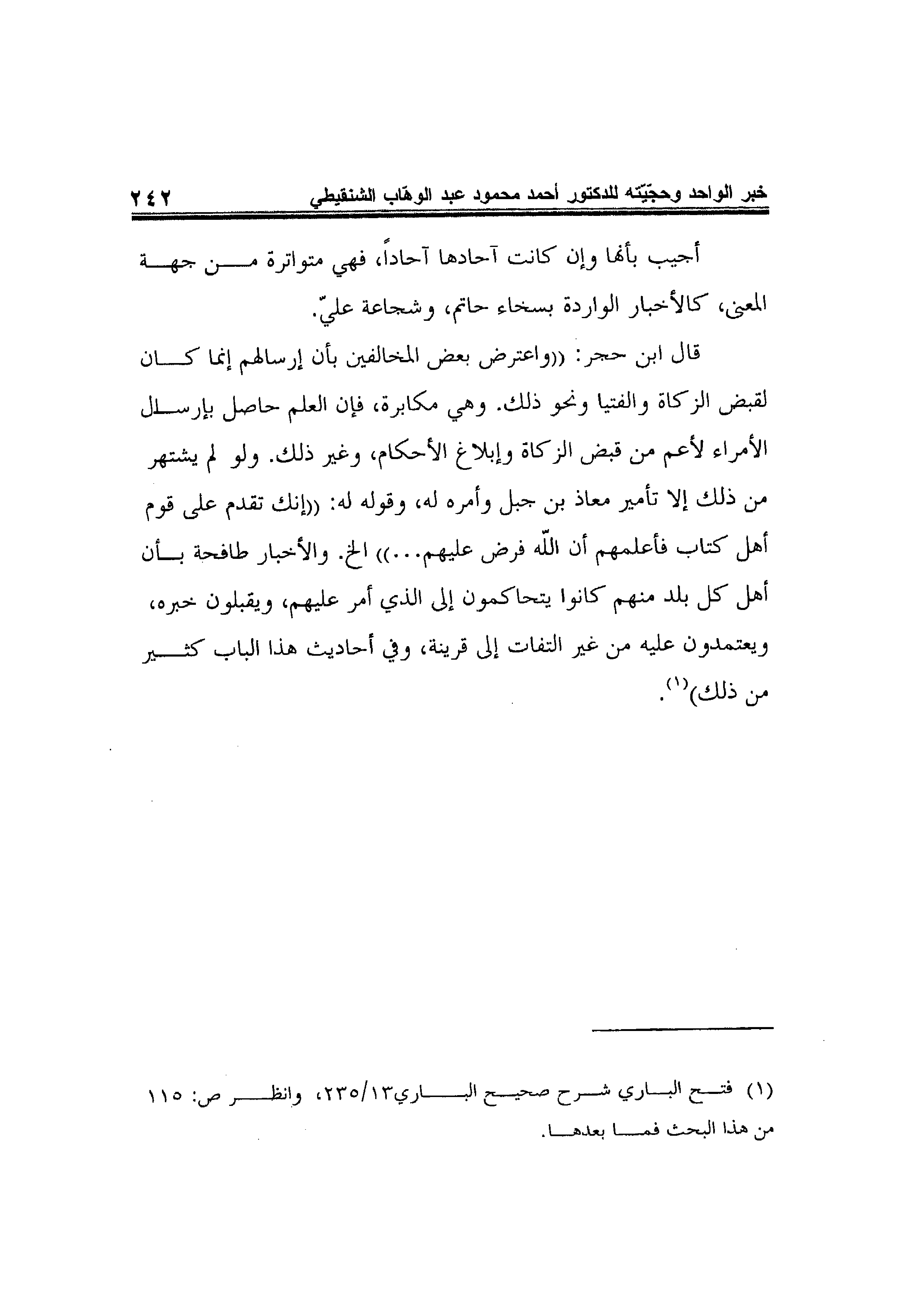 1 فتح الباري شرح صحيح الباري13/235، وانظر ص: 115 من هذا البحث فما بعدها.