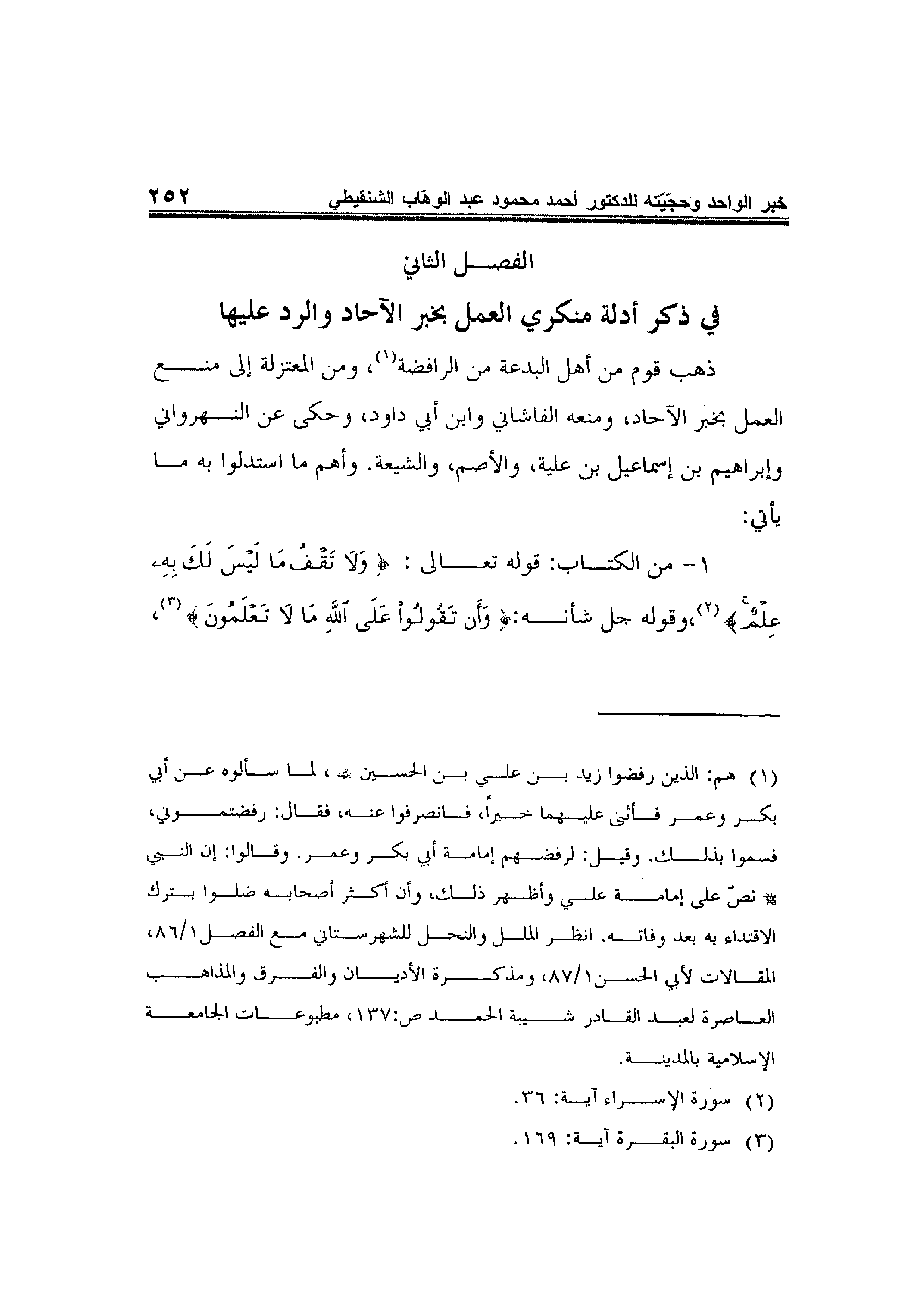الفصل الثاني: في ذكر أدلة منكري العمل بخبر الآحاد والرد عليها