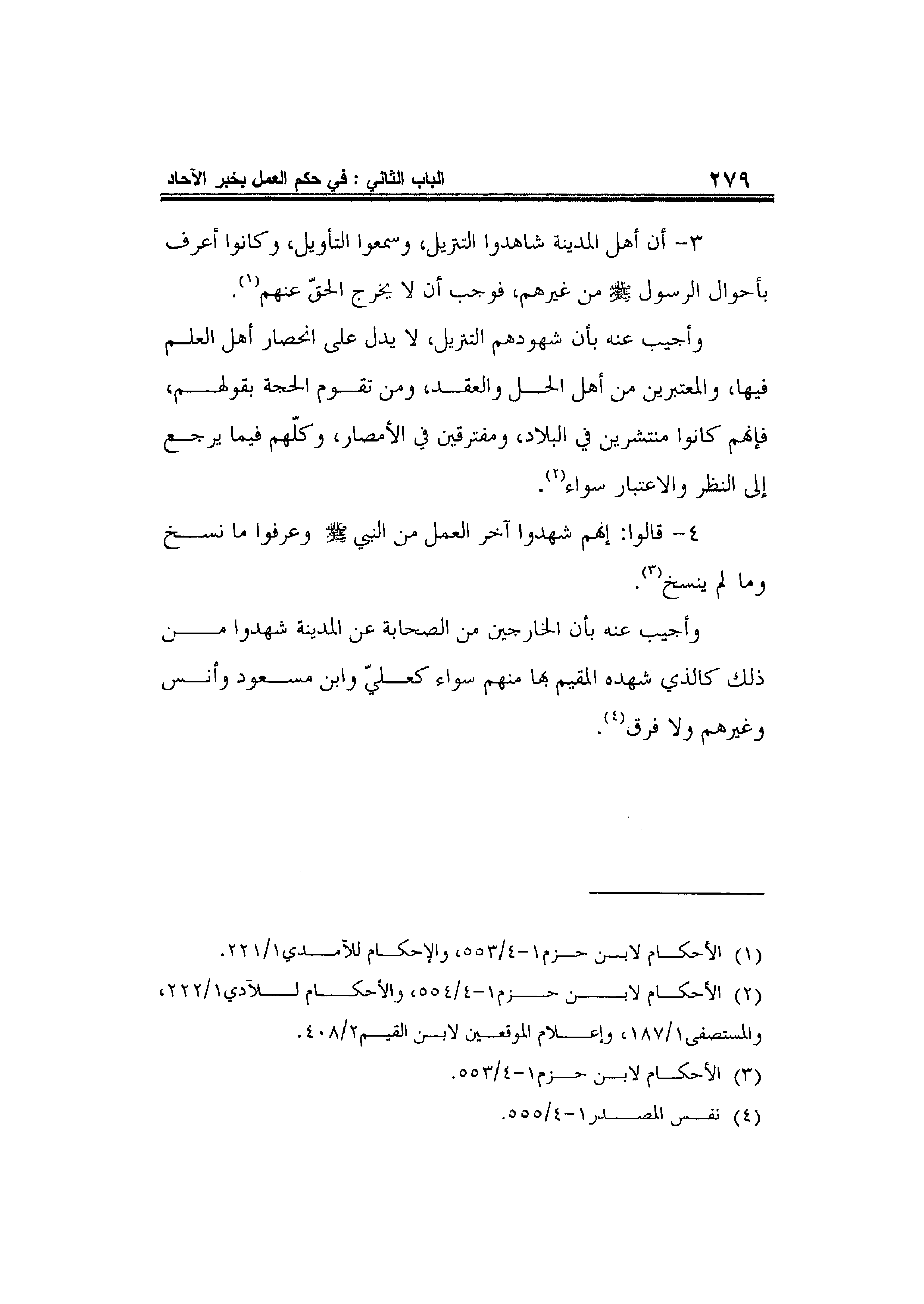 3- أن أهل المدينة شاهدوا التنزيل، وسمعوا التأويل، وكانوا أعرف بأحوال الرسول صلى الله عليه وسلم من غيرهم، فوجب أن لا يخرج الحقّ عنهم1.