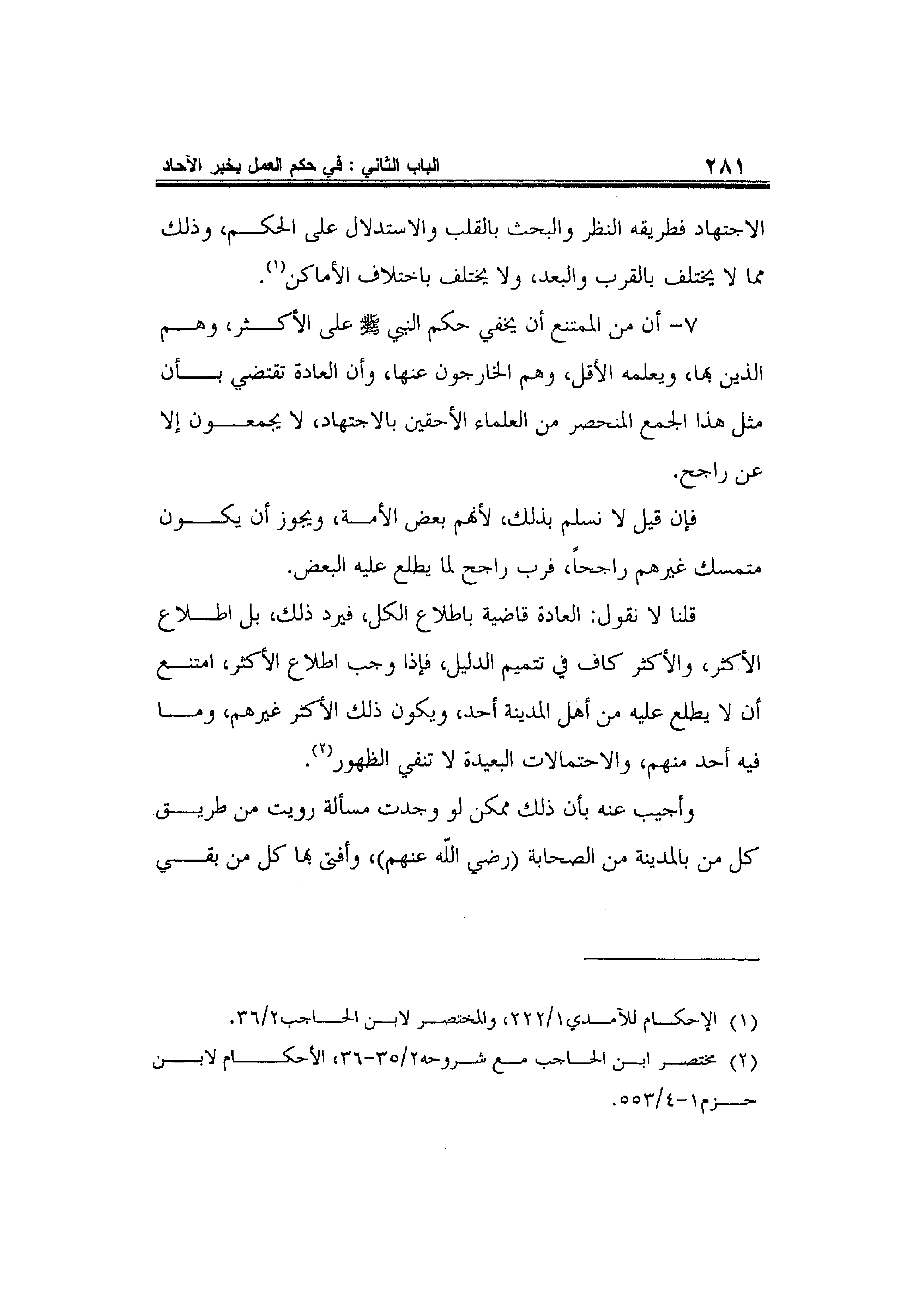 2 مختصر ابن الحاجب مع شروحه2/35-36، الأحكام لابن حزم1-4/553.