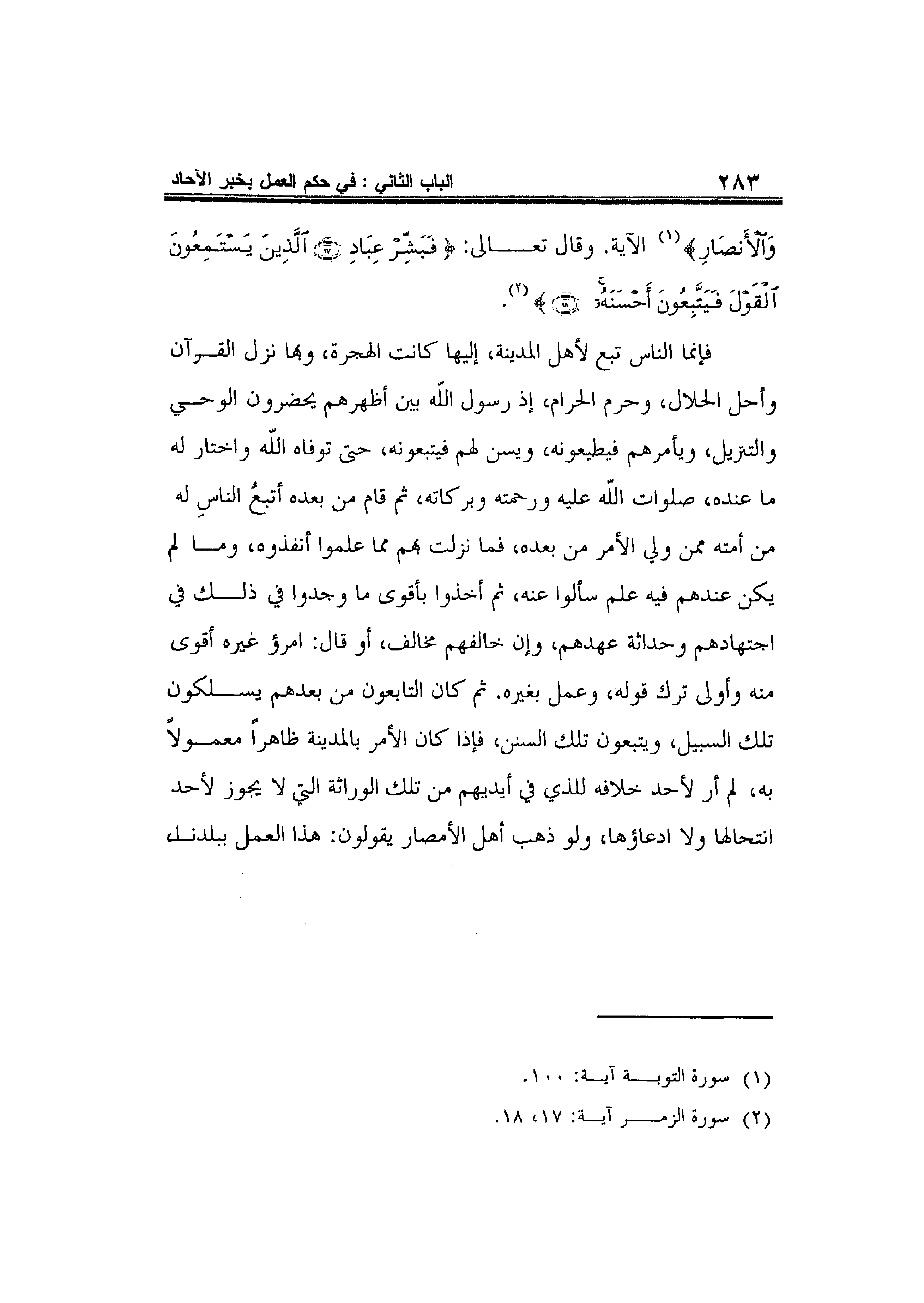 وَالأَنْصَارِ} 1الآية. وقال تعالى: {فَبَشِّرْ الَّذِينَ يَسْتَمِعُونَ الْقَوْلَ فَيَتَّبِعُونَ أَحْسَنَهُ} 2.