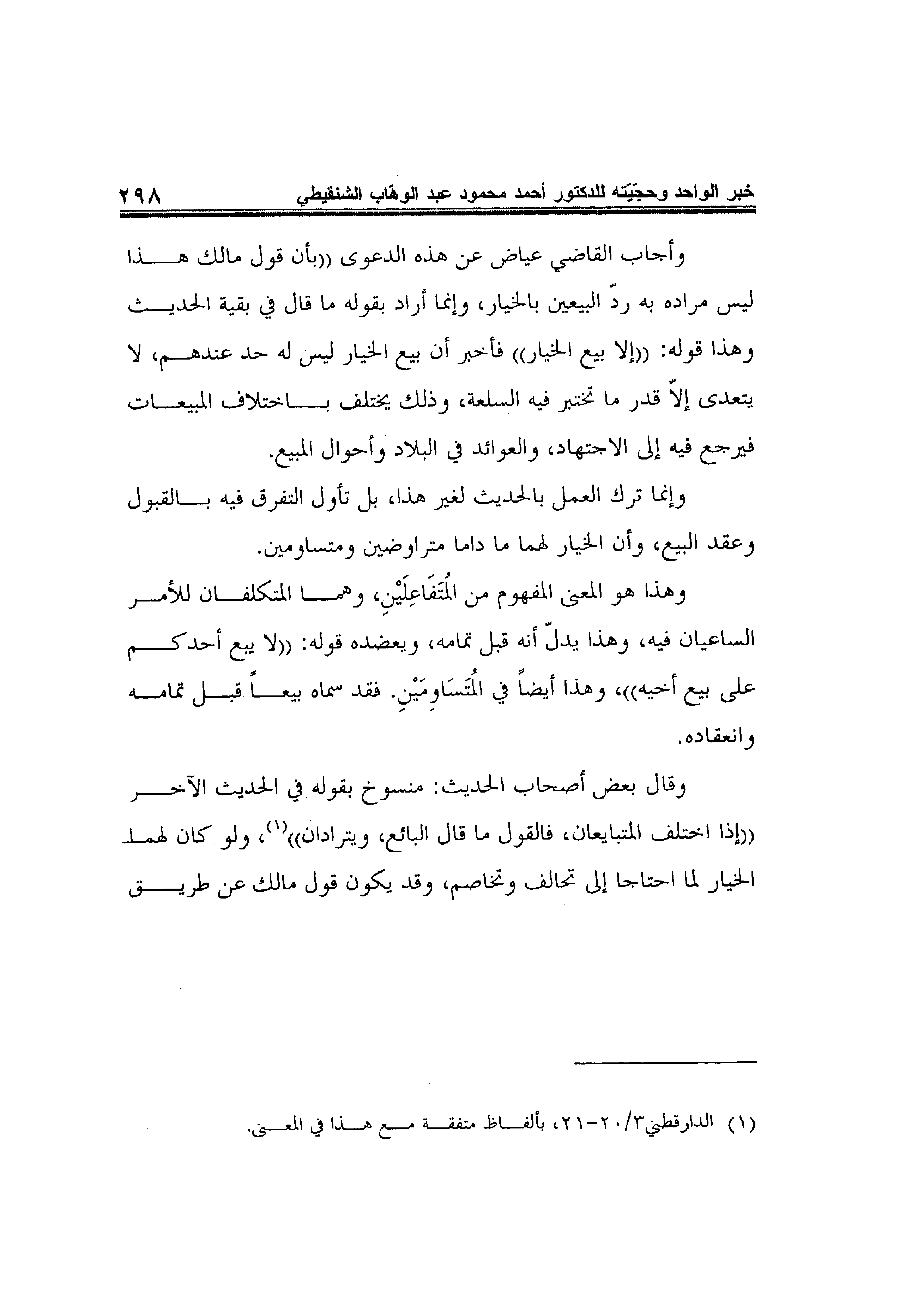 1 الدارقطني3/20-21، بألفاظ متفقة مع هذا في المعنى.