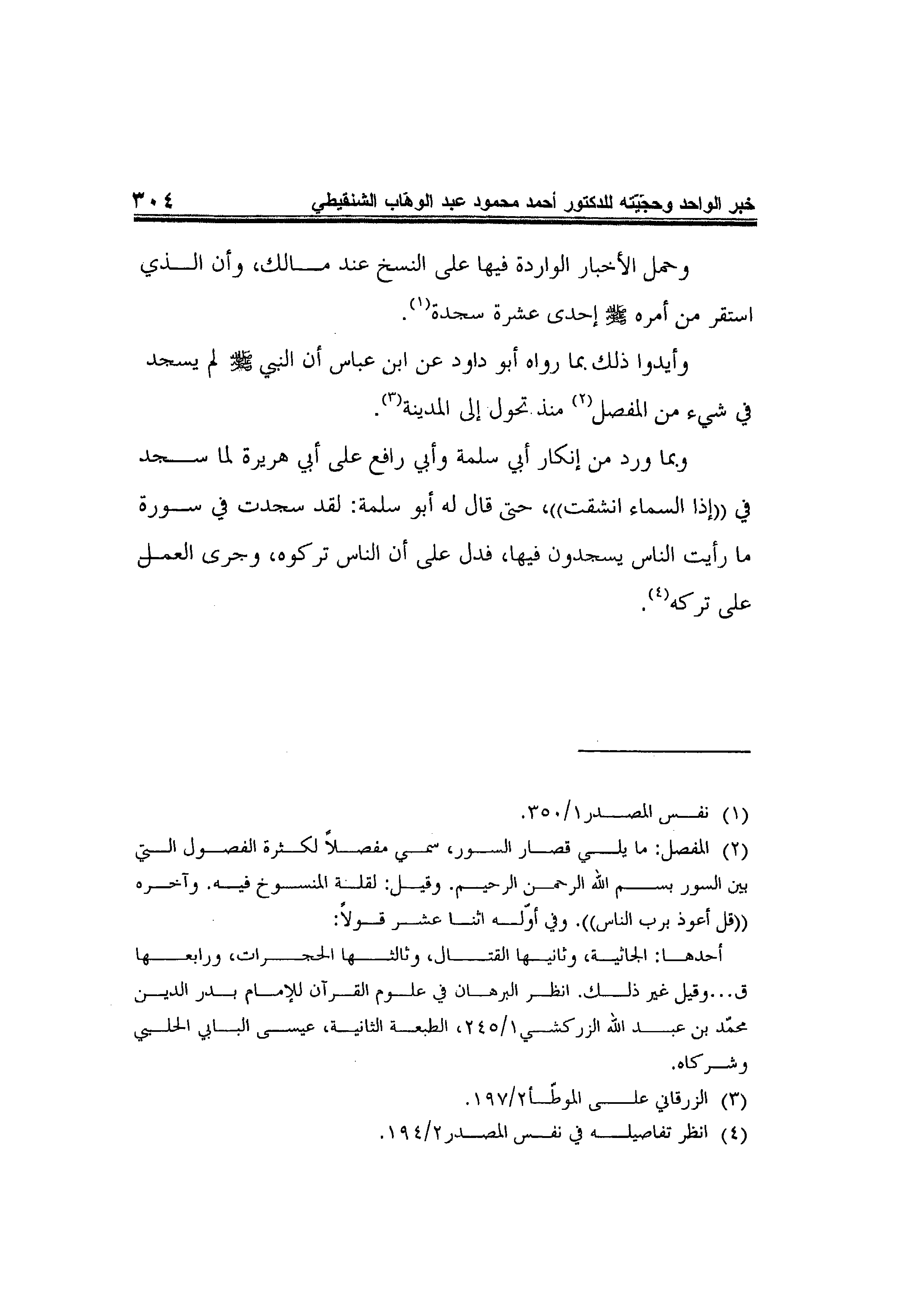وأيدوا ذلك بما رواه أبو داود عن ابن عباس أن النبي صلى الله عليه وسلم لم يسجد في شيء من المفصل2 منذ تحول إلى المدينة3.