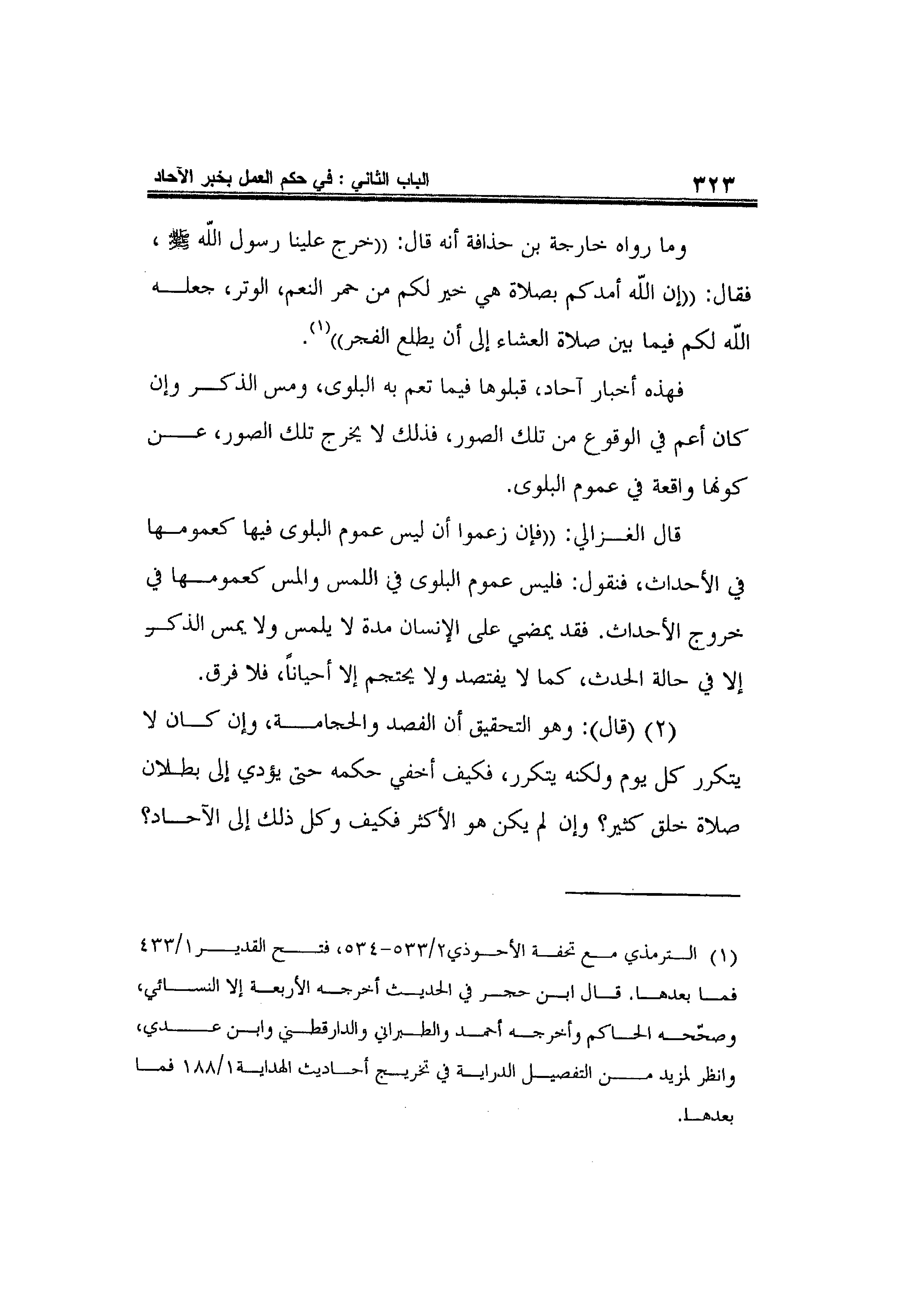 1 الترمذي مع تحفة الأحوذي2/533-534، فتح القدير1/433 فما بعدها. قال ابن حجر في الحديث أخرجه الأربعة إلا النسائي، وصحّحه الحاكم وأخرجه أحمد والطبراني والدارقطني وابن عدي، وانظر لمزيد من التفصيل الدراية في تخريج أحاديث الهداية1/188 فما بعدها.