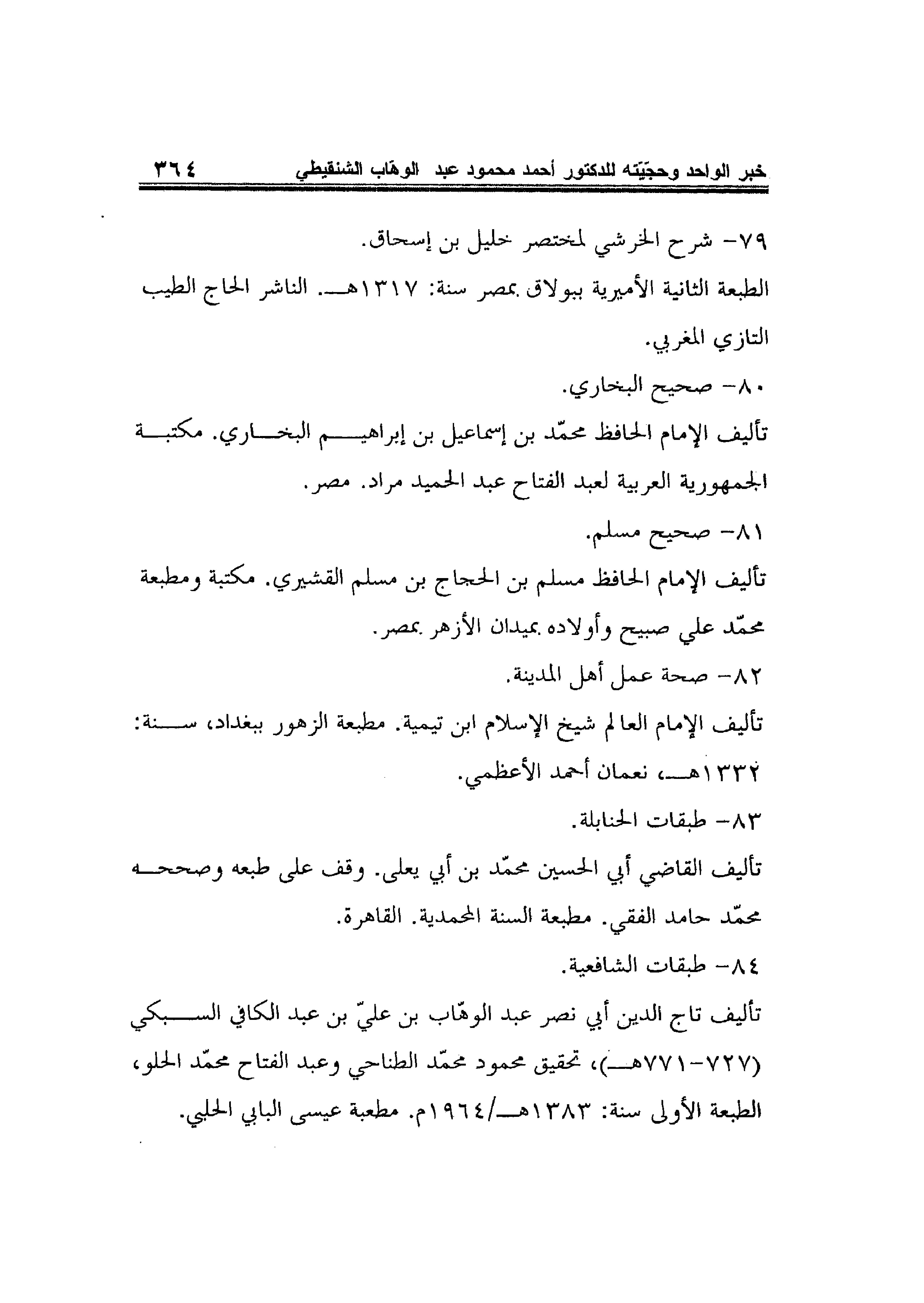 تأليف تاج الدين أبي نصر عبد الوهّاب بن عليّ بن عبد الكافي السبكي (727-771هـ) ، تحقيق محمود محمّد الطناحي وعبد الفتاح محمّد الحلو، الطبعة الأولى سنة: 1383هـ/1964م. مطعبة عيسى البابي الحلبي.