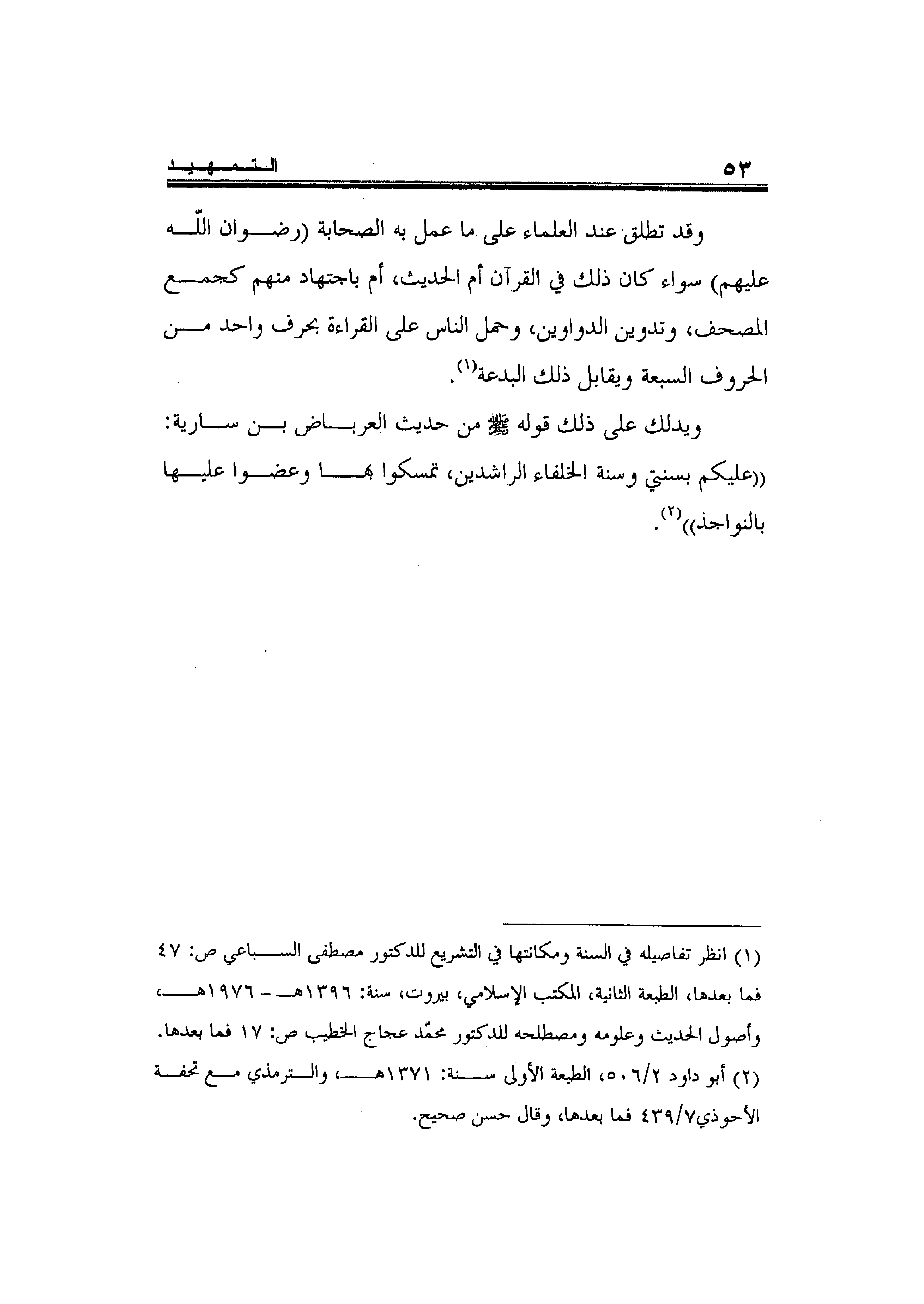 ويدلك على ذلك قوله صلى الله عليه وسلم من حديث العرباض بن سارية: " عليكم بسنتي وسنة الخلفاء الراشدين، تمسكوا بها وعضوا عليها بالنواجذ" 2.