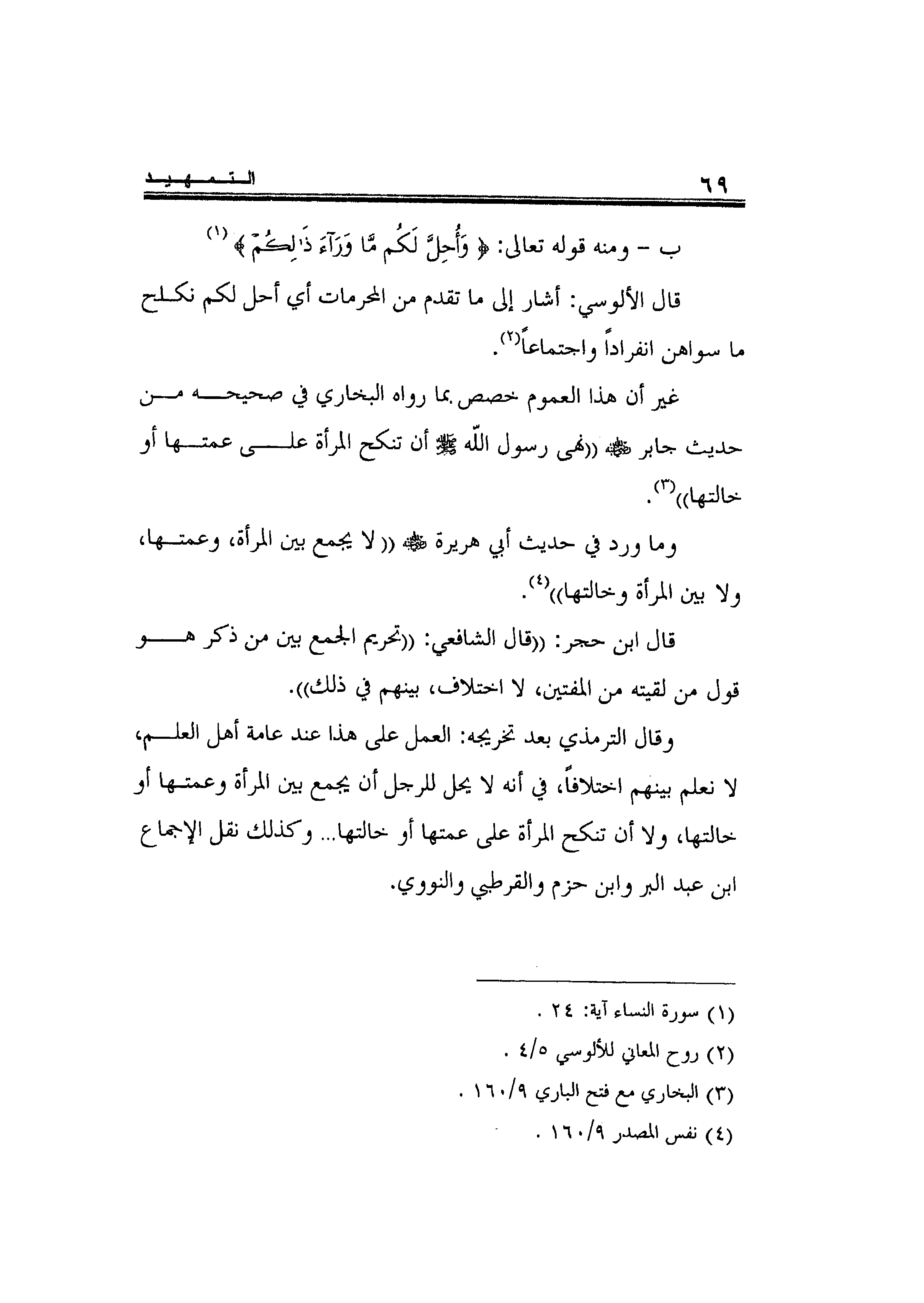 وما ورد في حديث أبي هريرة رضي الله عنه: " لا يجمع بين المرأة، وعمتها، ولا بين المرأة وخالتها" 4.