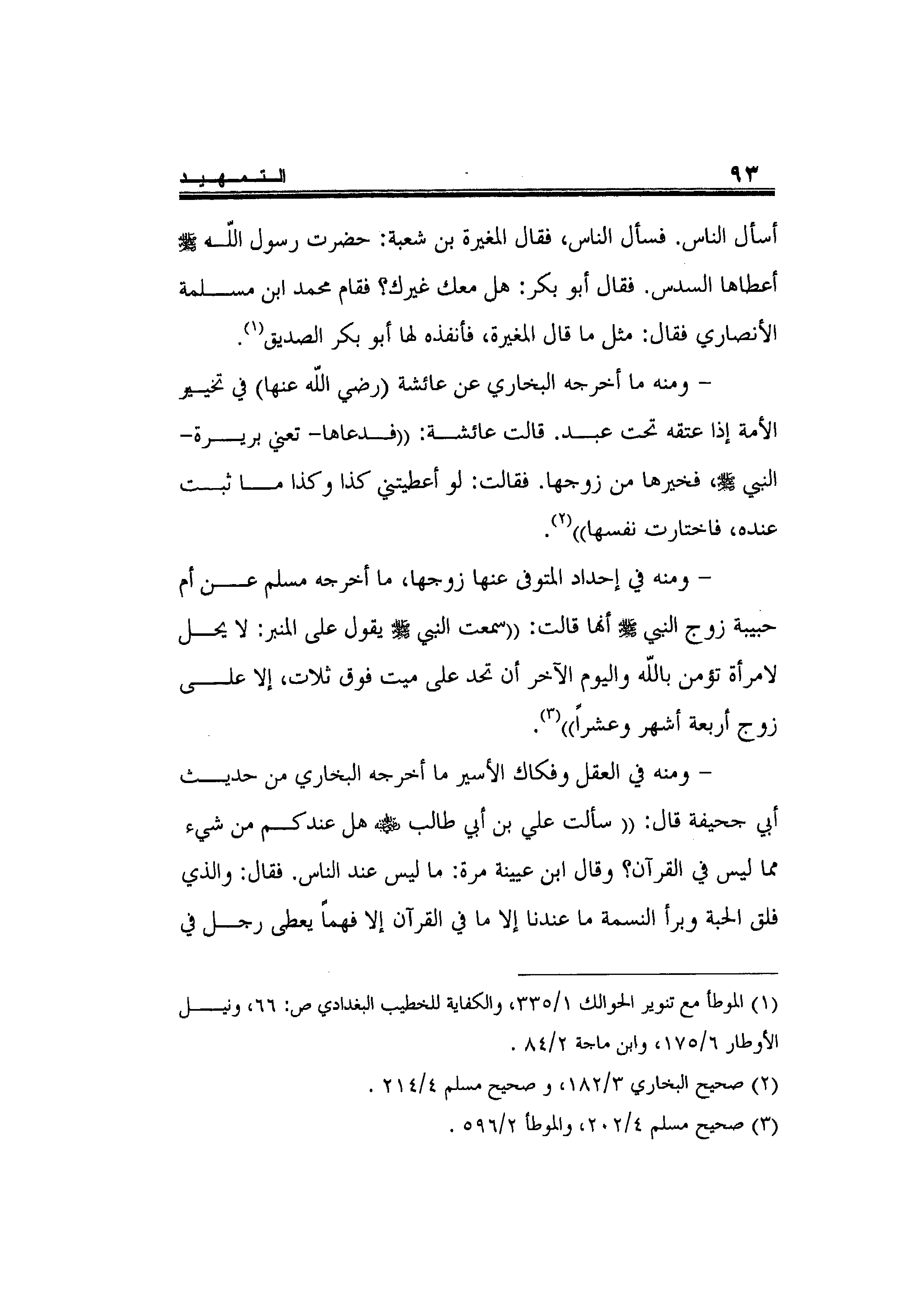 1 الموطأ مع تنوير الحوالك 1/335، والكفاية للخطيب البغدادي ص: 66، ونيل الأوطار 6/175، وابن ماجة 2/84.