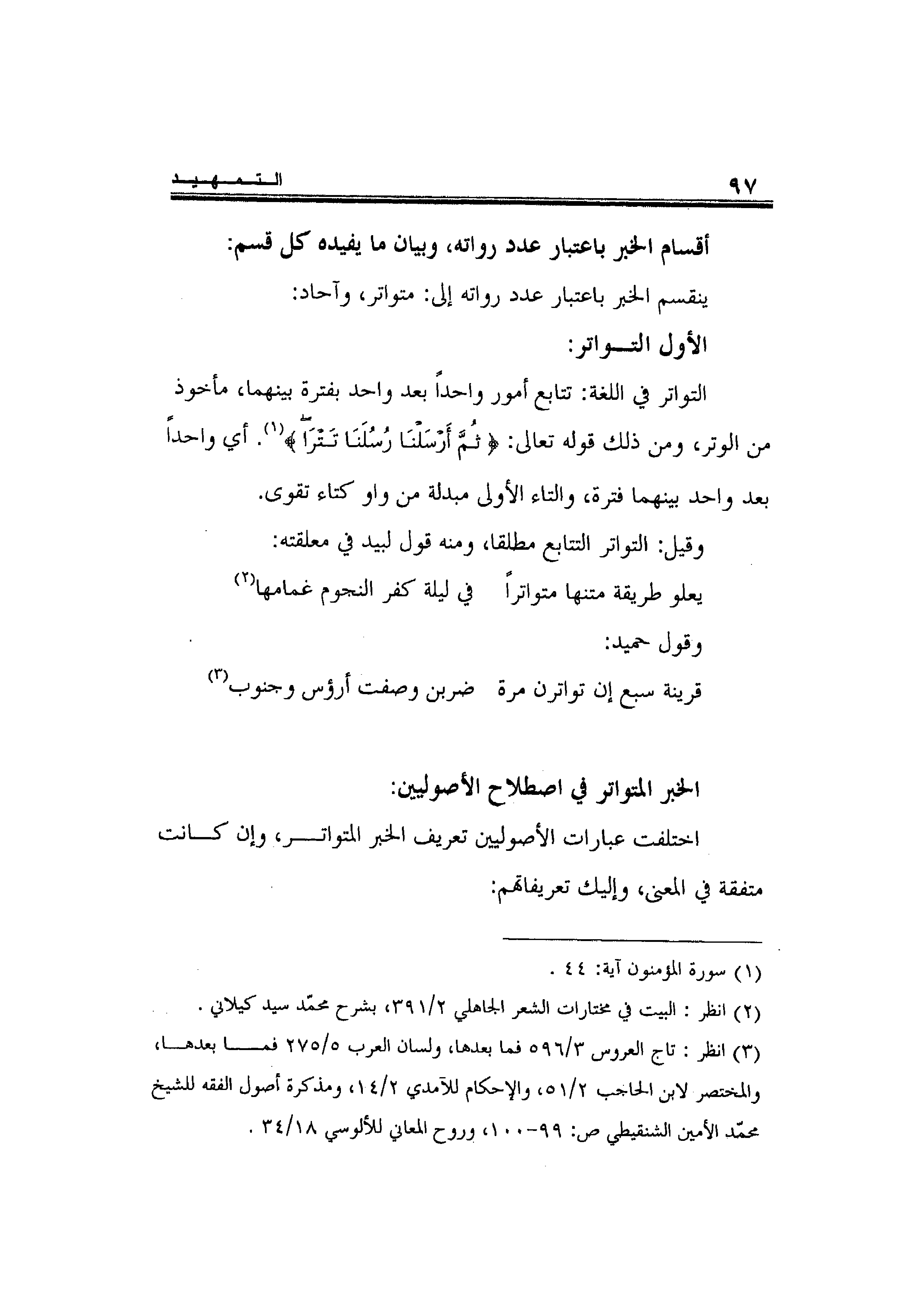 الخبر المتواتر في اصطلاح الأصوليين: