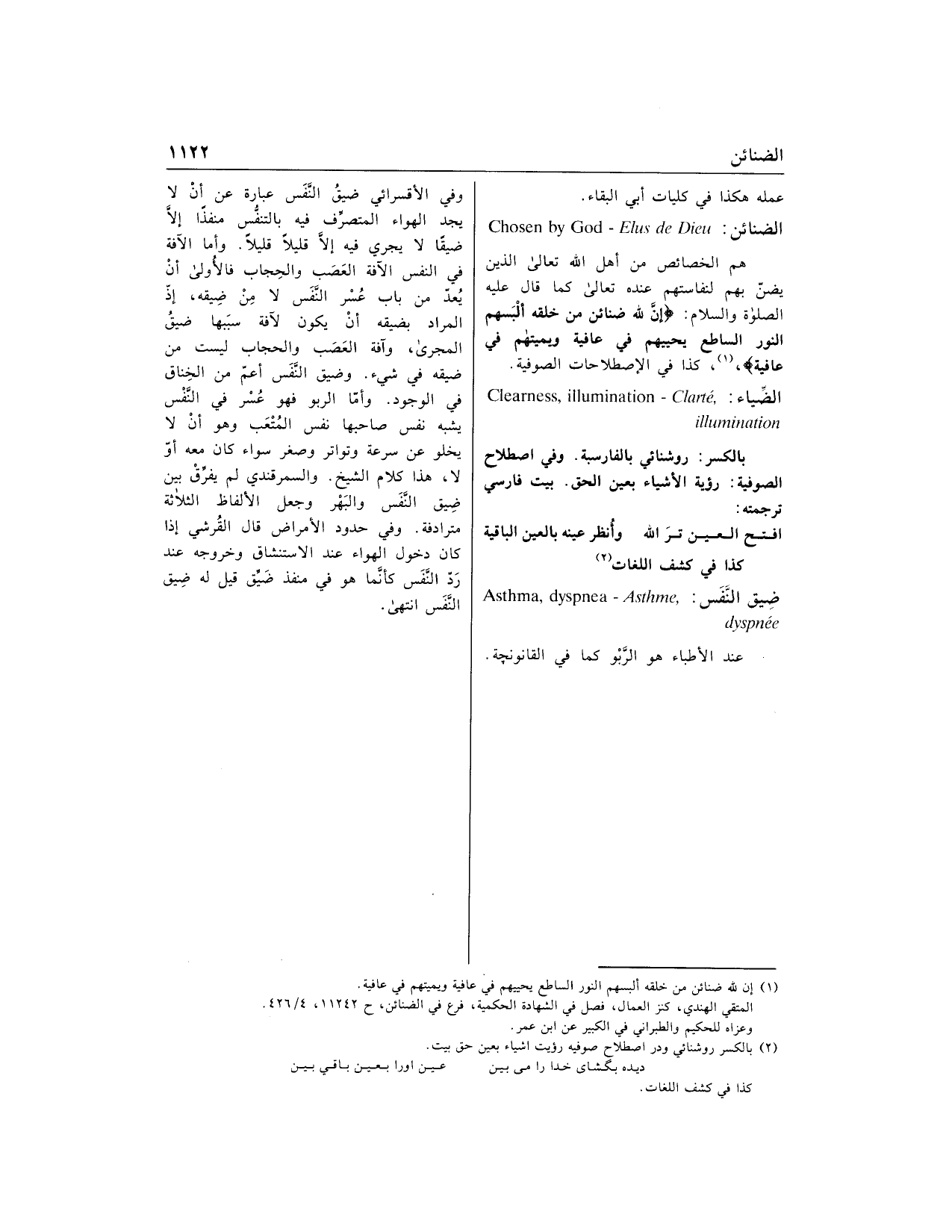 هم الخصائص من أهل الله تعالى الذين يضنّ بهم لنفاستهم عنده تعالى كما قال عليه الصلاة والسلام: «إنّ لله ضنائن من خلقه ألبسهم النور الساطع يحييهم في عافية ويميتهم في عافية»، «1»، كذا في الاصطلاحات الصوفية.