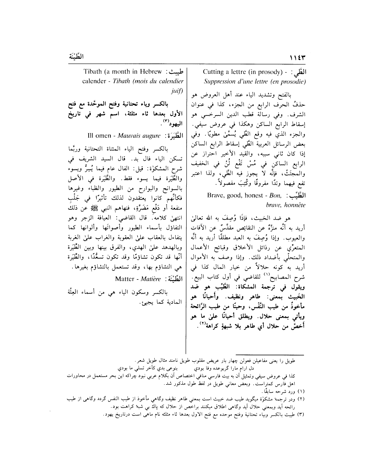 (2) ودر ترجمه مشكاة ميگويد طيب ضد خبيث است بمعني طاهر نظيف وگاهى مأخوذ از طيب النفس گردد وگاهى از طيب رائحه آيد وبمعني حلال آيد وگاهى اطلاق ميكنند بر اخص از حلال كه پاك بى شبه كراهت بود.