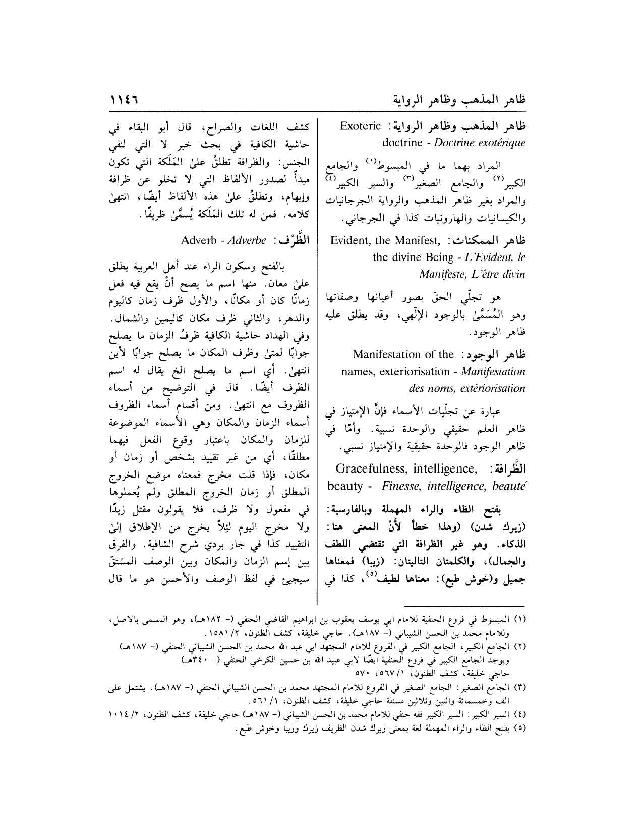 الذكاء. وهو غير الظرافة التي تقتضي اللطف والجمال)، والكلمتان التاليتان: (زيبا) فمعناها جميل و (خوش طبع): معناها لطيف «5»، كذا في كشف اللغات والصراح، قال أبو البقاء في حاشية الكافية في بحث خبر لا التي لنفي الجنس: والظرافة تطلق على الملكة التي تكون مبدأ لصدور الألفاظ التي لا تخلو عن ظرافة وإيهام، وتطلق على هذه الألفاظ أيضا، انتهى كلامه. فمن له تلك الملكة يسمّى ظريفا.