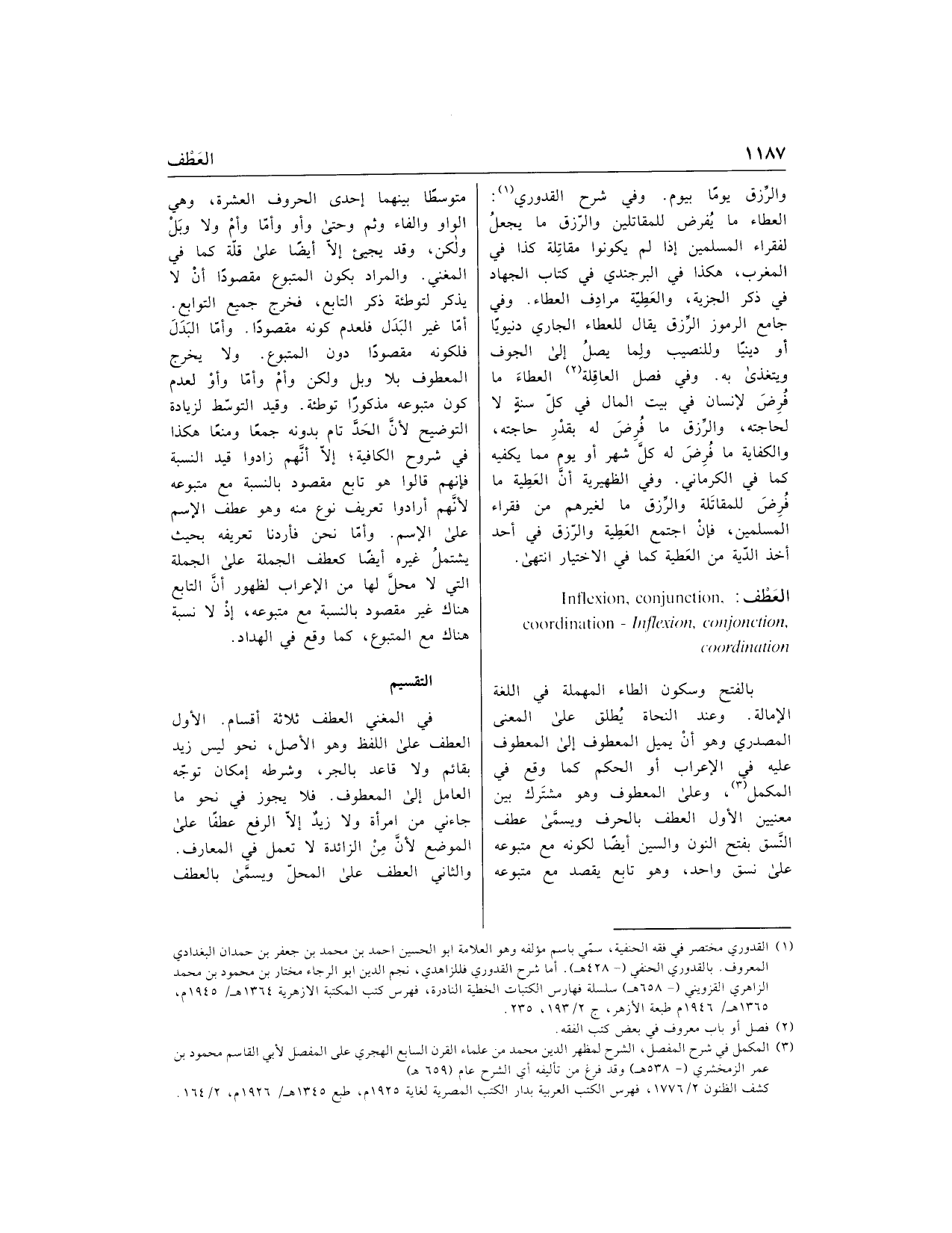 (1) القدوري مختصر في فقه الحنفية، سمّي باسم مؤلفه وهو العلامة ابو الحسين احمد بن محمد بن جعفر بن حمدان البغدادي المعروف. بالقدوري الحنفي (- 428 هـ). أما شرح القدوري فللزاهدي، نجم الدين ابو الرجاء مختار بن محمود بن محمد الزاهري القزويني (- 658 هـ) سلسلة فهارس الكتبات الخطية النادرة، فهرس كتب المكتبة الازهرية 1364 هـ/ 1945 م، 1365 هـ/ 1946 م طبعة الأزهر، ج 2/ 193، 235.