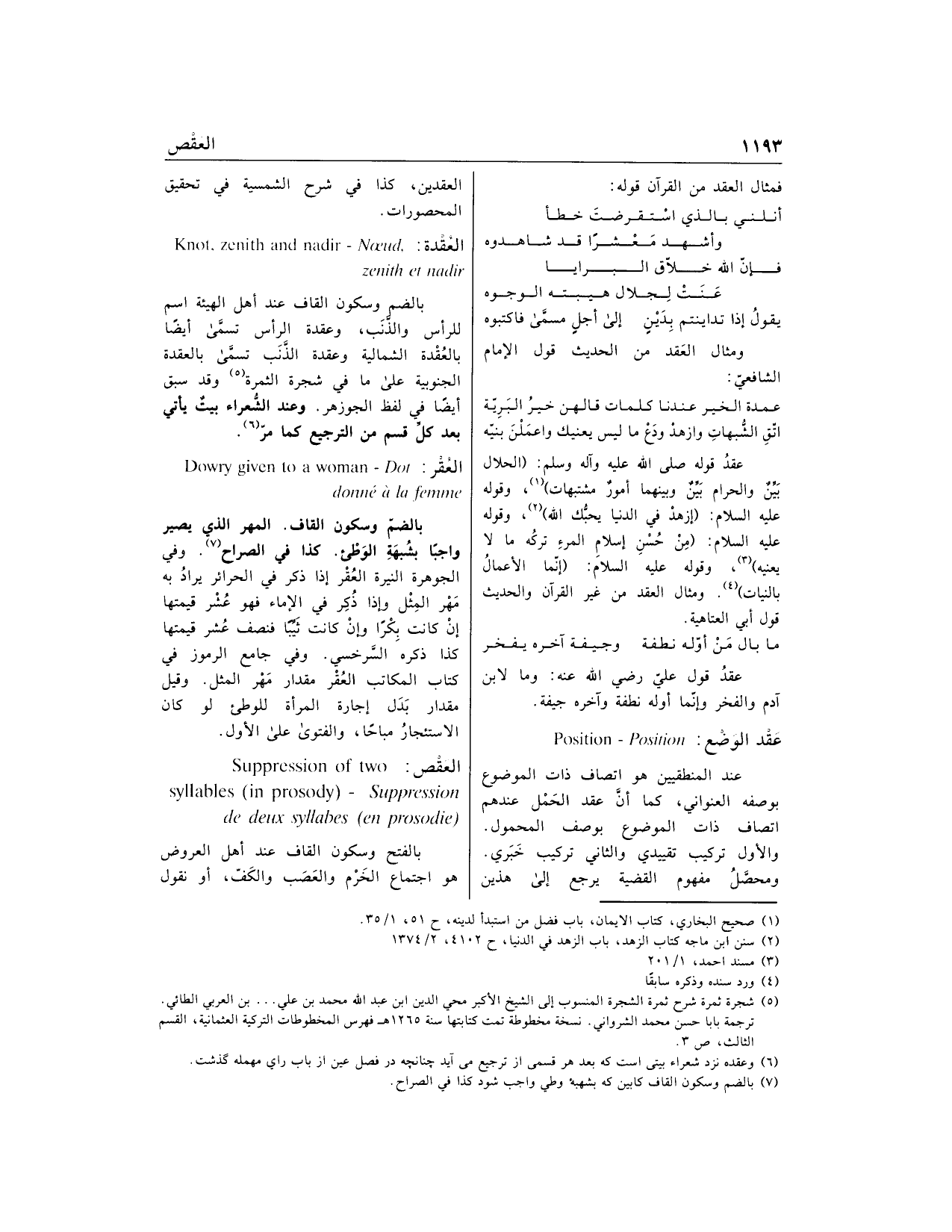 بالضم وسكون القاف عند أهل الهيئة اسم للرأس والذّنب، وعقدة الرأس تسمّى أيضا بالعقدة الشمالية وعقدة الذّنب تسمّى بالعقدة الجنوبية على ما في شجرة الثمرة «5» وقد سبق أيضا في لفظ الجوزهر. وعند الشّعراء بيت يأتي بعد كلّ قسم من الترجيع كما مرّ «6».