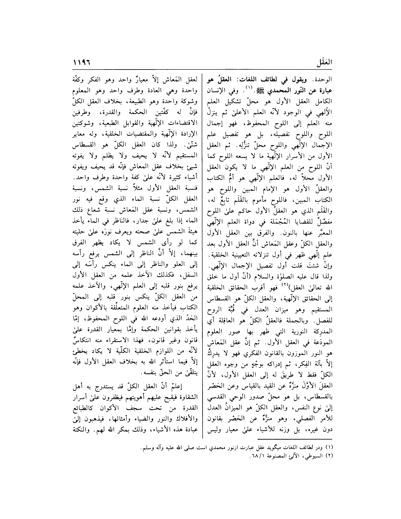 (1) ودر لطائف اللغات ميگويد عقل عبارت از نور محمدي است صلّى الله عليه وآله وسلّم.