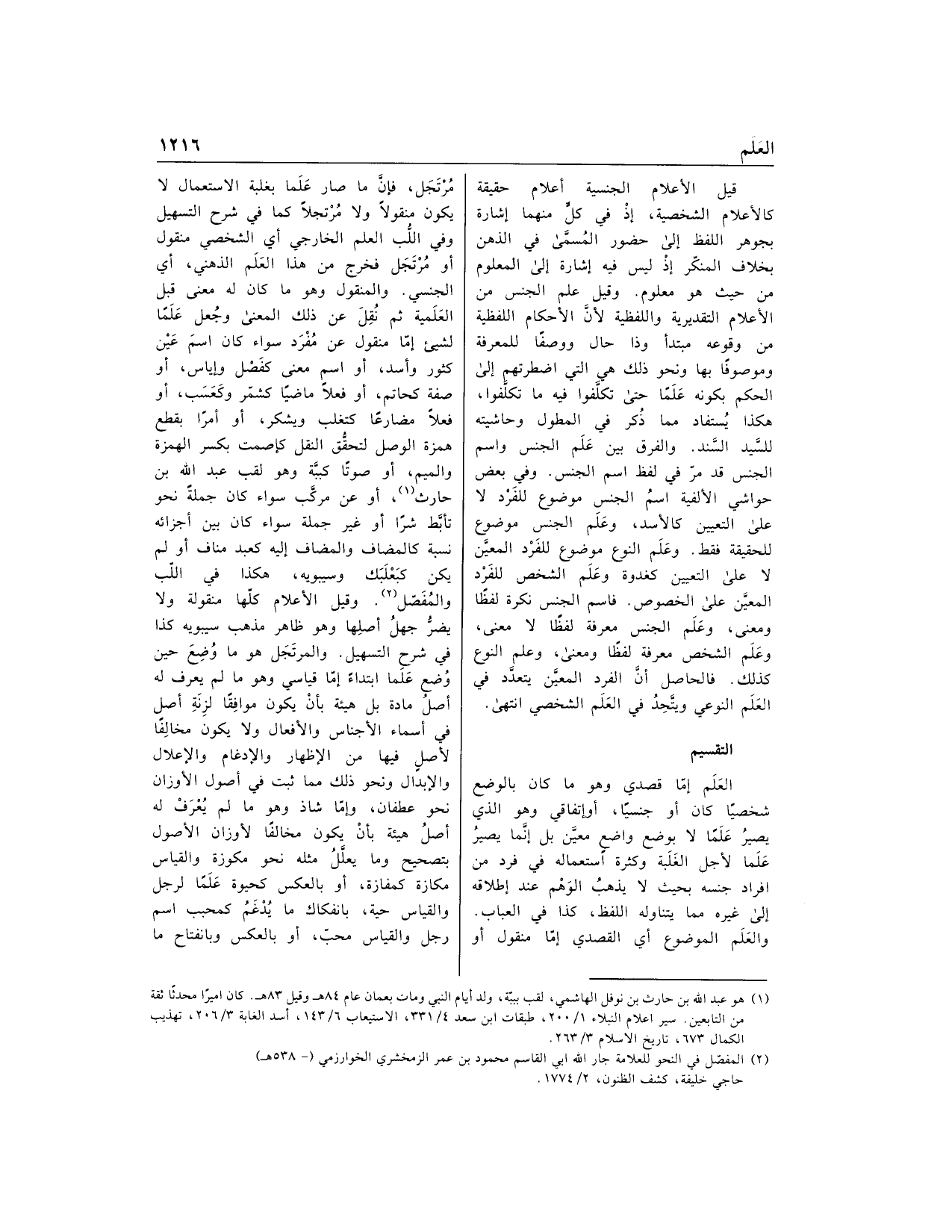 (2) المفصّل في النحو للعلامة جار الله ابي القاسم محمود بن عمر الزمخشري الخوارزمي (- 538 هـ) حاجي خليفة، كشف الظنون، 2/ 1774.