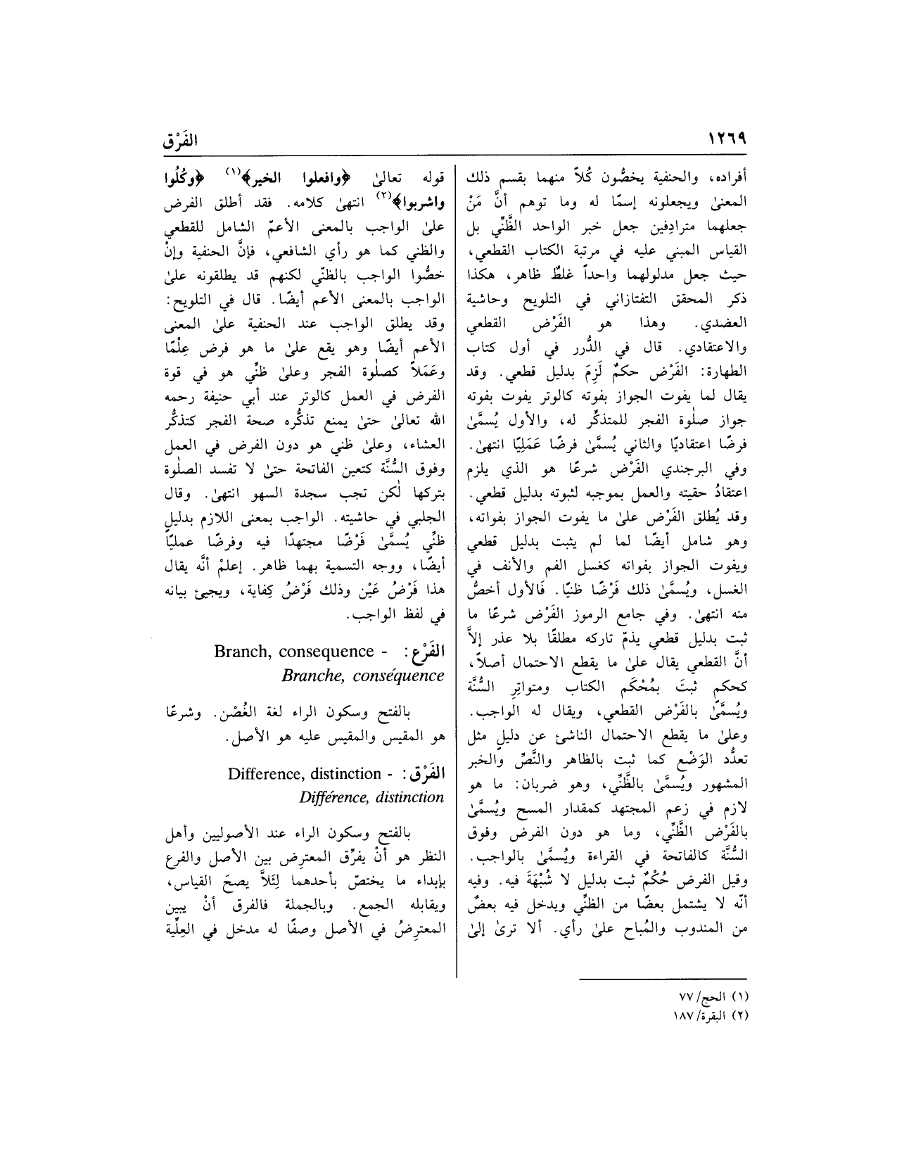 أفراده، والحنفية يخصّون كلا منهما بقسم ذلك المعنى ويجعلونه اسما له وما توهم أنّ من جعلهما مترادفين جعل خبر الواحد الظّنّي بل القياس المبني عليه في مرتبة الكتاب القطعي، حيث جعل مدلولهما واحدا غلط ظاهر، هكذا ذكر المحقق التفتازاني في التلويح وحاشية العضدي. وهذا هو الفرض القطعي والاعتقادي. قال في الدّرر في أول كتاب الطهارة: الفرض حكم لزم بدليل قطعي. وقد يقال لما يفوت الجواز بفوته كالوتر يفوت بفوته جواز صلاة الفجر للمتذكّر له، والأول يسمّى فرضا اعتقاديا والثاني يسمّى فرضا عمليا انتهى.