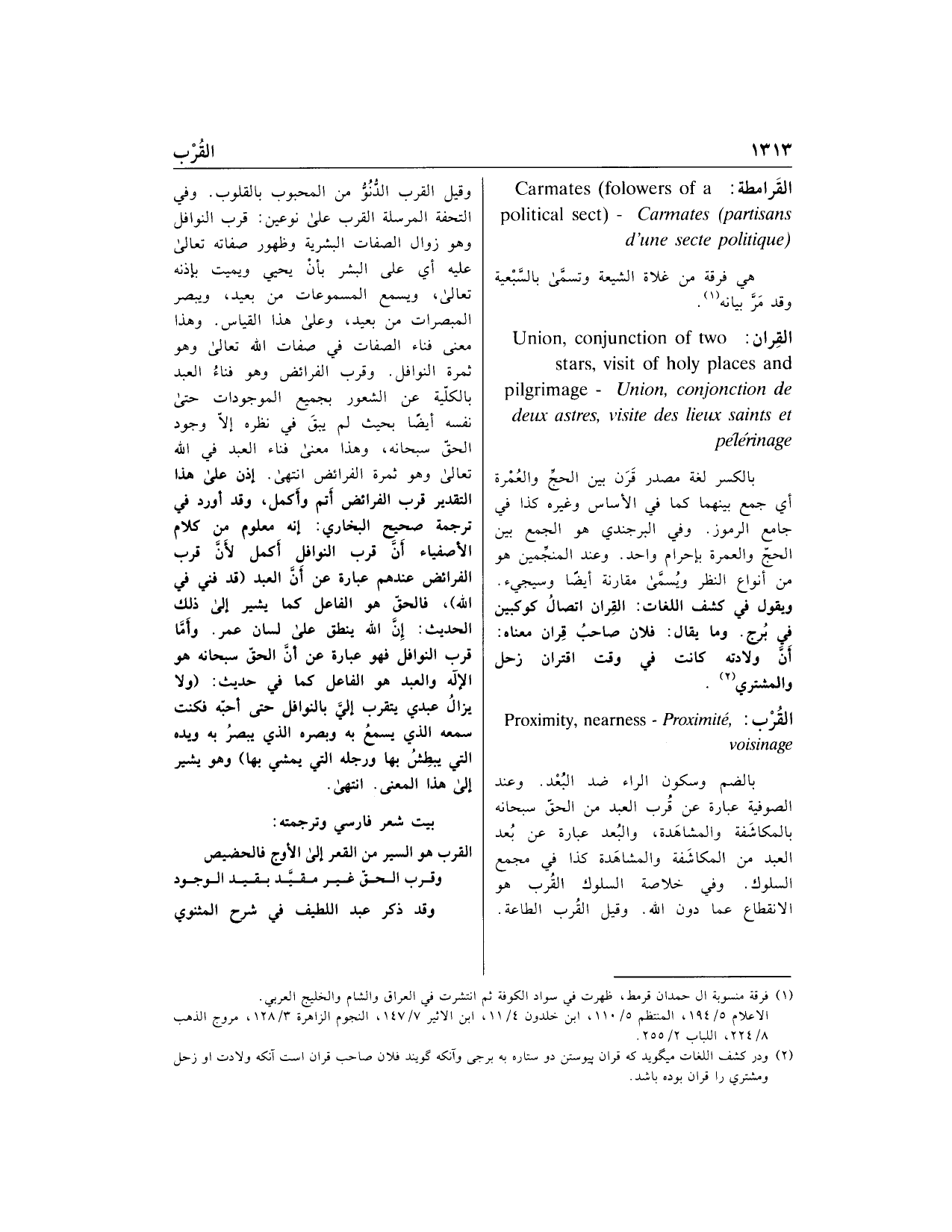 (2) ودر كشف اللغات ميگويد كه قران پيوستن دو ستاره به برجى وآنكه گويند فلان صاحب قران است آنكه ولادت او زحل ومشتري را قران بوده باشد.