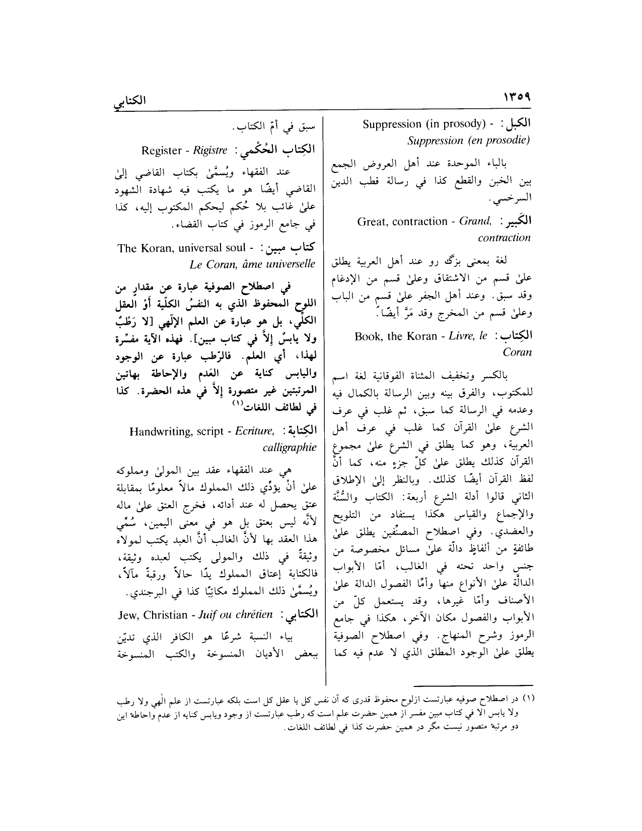 (1) در اصطلاح صوفيه عبارتست از لوح محفوظ قدرى كه آن نفس كل يا عقل كل است بلكه عبارتست از علم إلهي ولا رطب ولا يابس الا في كتاب مبين مفسر از همين حضرت علم است كه رطب عبارتست از وجود ويابس كنايه از عدم واحاطه اين دو مرتبه متصور نيست مگر در همين حضرت كذا في لطائف اللغات.