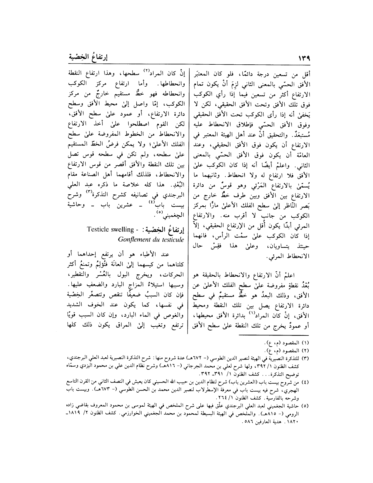 (3) للتذكرة النصيرية في الهيئة لنصير الدين الطوسي (- 672 هـ) عدة شروح منها: شرح التذكرة النصيرية لعبد العلي البرجندي، كشف الظنون 1/ 392، ولها شرح لعلي بن محمد الجرجاني (- 816 هـ) وشرح نظام الدين علي بن محمود اليزدي وسمّاه توضيح التذكرة ... كشف الظنون 1/ 391 - 392.