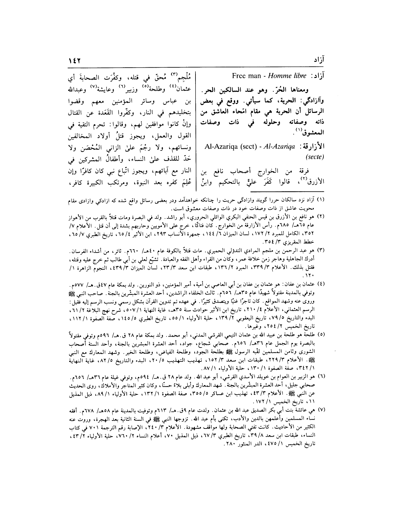 (1) آزاد نزد سالكان حر را گويند وآزادگى حريت را چنانكه خواهد آمد ودر بعضى رسائل واقع شده كه آزادگى وآزادى مقام محويت عاشق از ذات وصفات خود در ذات وصفات معشوق است.
