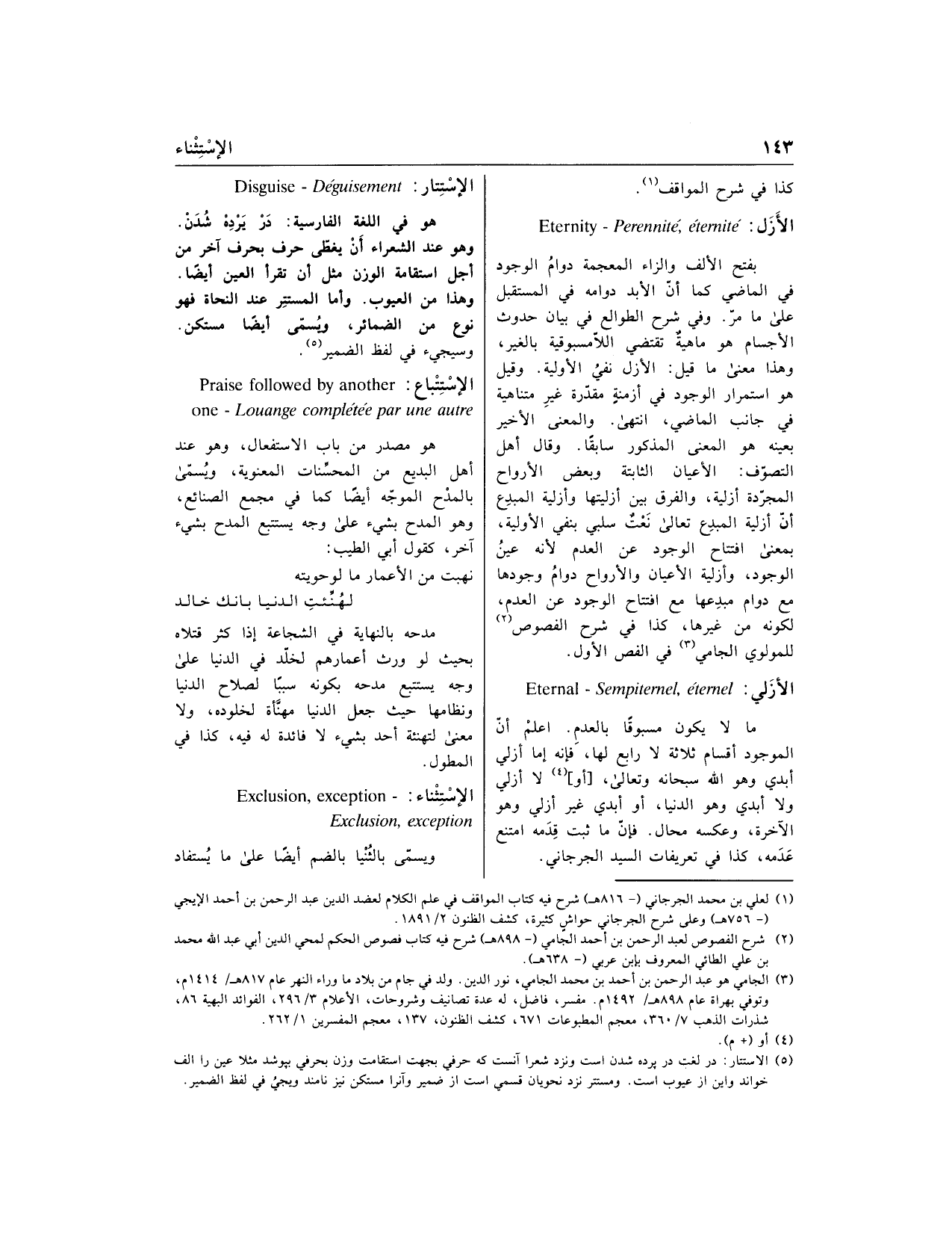 (3) الجامي هو عبد الرحمن بن أحمد بن محمد الجامي، نور الدين. ولد في جام من بلاد ما وراء النهر عام 817 هـ/ 1414 م، وتوفي بهراة عام 898 هـ/ 1492 م. مفسر، فاضل، له عدة تصانيف وشروحات، الأعلام 3/ 296، الفوائد البهية 86، شذرات الذهب 7/ 360، معجم المطبوعات 671، كشف الظنون، 137، معجم المفسرين 1/ 262.