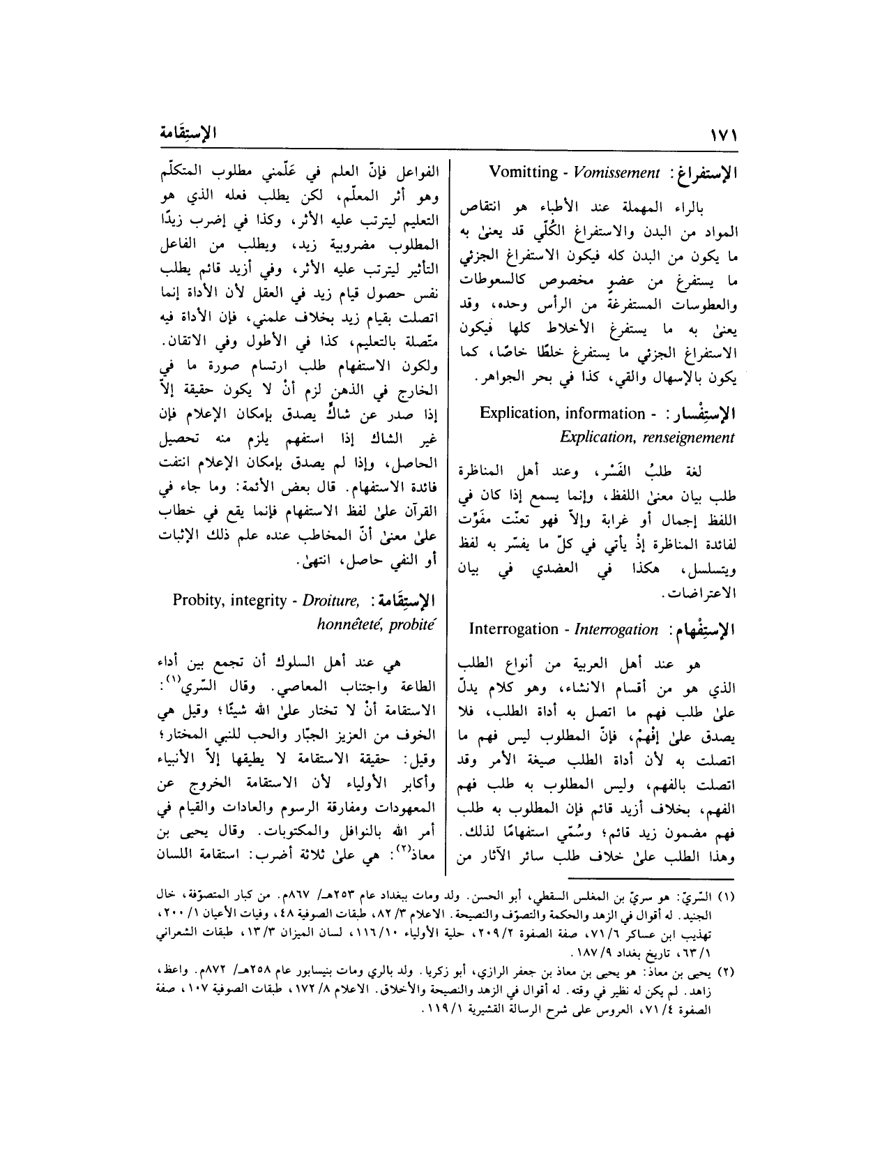 [ في الفرنسية] Droiture ،honnetete ،probite