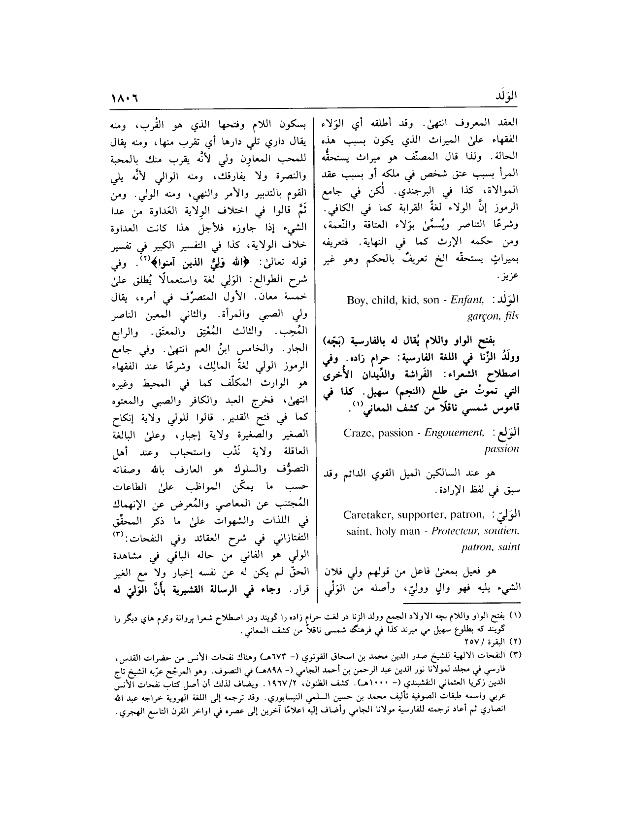 (1) بفتح الواو واللام بچهـ الاولاد الجمع وولد الزنا در لغت حرام زاده را گويند ودر اصطلاح شعرا پروانه وكرم هاى ديگر را گويند كه بطلوع سهيل مى ميرند كذا في فرهنگ شمسى ناقلا من كشف المعاني.