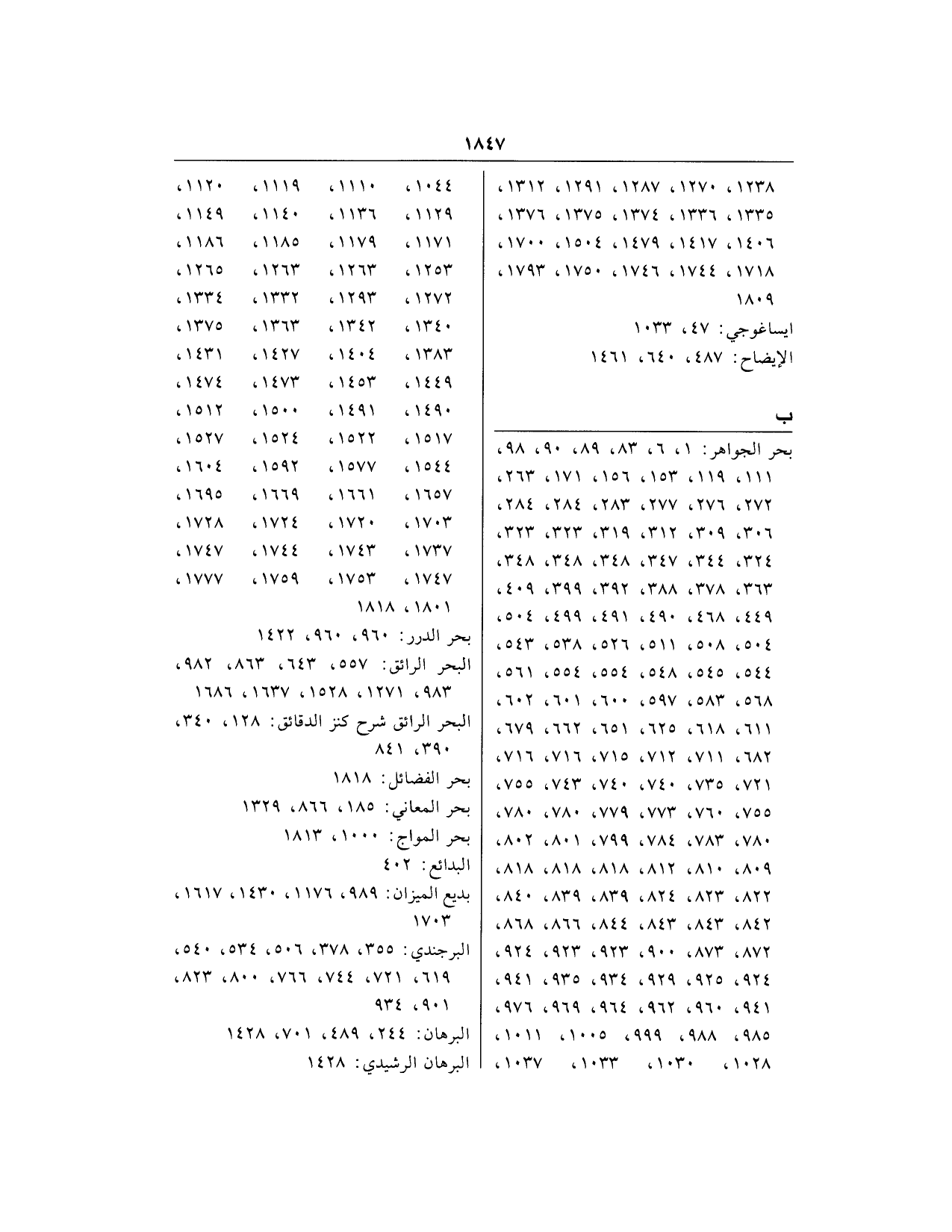 ب بحر الجواهر: 1، 6، 83، 89، 90، 98، 111، 119، 153، 156، 171، 263، 272، 276، 277، 283، 284، 284، 306، 309، 312، 319، 323، 323، 324، 344، 347، 348، 348، 348، 363، 378، 388، 392، 399، 409، 449، 468، 490، 491، 499، 504، 504، 508، 511، 526، 538، 543، 544، 545، 548، 554، 554، 561، 568، 583، 597، 600، 601، 602، 611، 618، 625، 651، 662، 679، 682، 711، 712، 715، 716، 716، 721، 735، 740، 740، 743، 755، 755، 760، 773، 779، 780، 780، 780، 783، 784، 799، 801، 802، 809، 810، 812، 818، 818، 818، 822، 823، 824، 839، 839، 840، 842، 843، 843، 844، 866، 868، 872، 873، 900، 923، 923، 924، 924، 925، 929، 934، 935، 941، 941، 960، 962، 964، 969، 976، 985، 988، 999، 1005، 1011، 1028، 1030، 1033، 1037، 1044، 1110، 1119، 1120، 1129، 1136، 1140، 1149، 1171، 1179، 1185، 1186، 1253، 1263، 1263، 1263، 1265، 1272، 1293، 1332، 1334، 1340، 1342، 1363، 1375، 1383، 1404، 1427، 1431، 1449، 1453، 1473، 1474، 1490، 1491، 1500، 1512، 1517، 1522، 1524، 1527، 1544، 1577، 1592، 1604، 1657، 1661، 1669، 1695، 1703، 1720، 1724، 1728، 1737، 1743، 1744، 1747، 1747، 1753، 1759، 1777، 1801، 1818