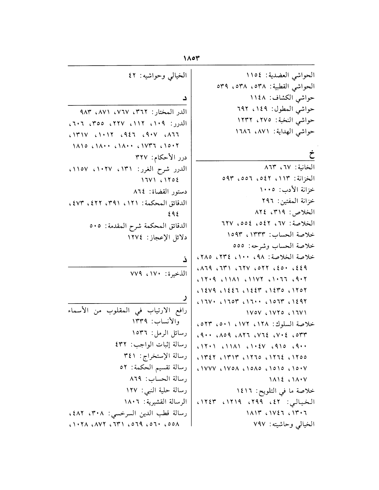 خلاصة الخلاصة: 98، 100، 234، 285، 449، 450، 522، 627، 631، 869، 902، 1066، 1172، 1181، 1209، 1252، 1435، 1443، 1446، 1479، 1492، 1563، 1600، 1653، 1670، 1671، 1725، 1757