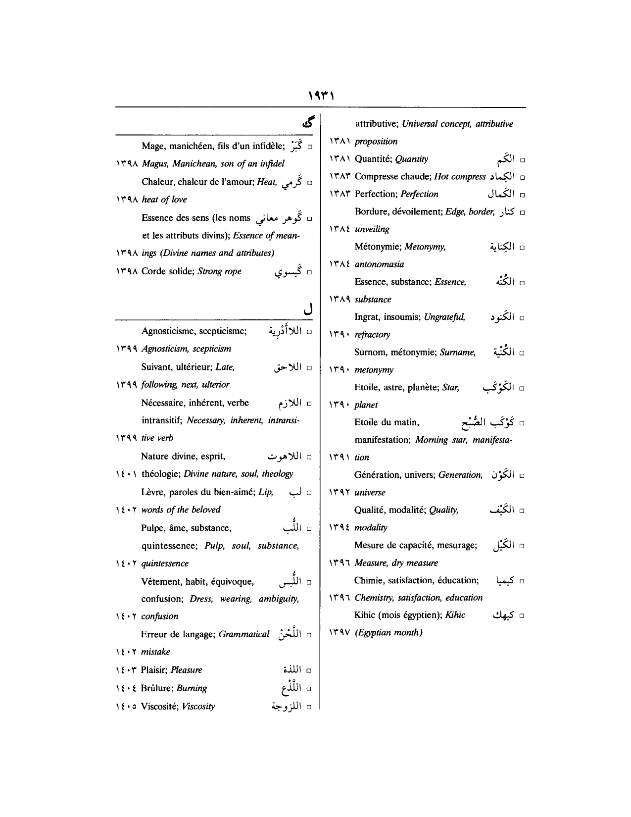 Essence des sens( les noms et les attributs divins ); Essence of mean- ings) Divine names and attributes (