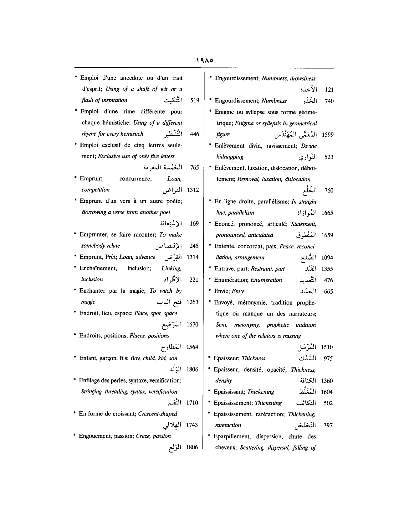 * Emploi d'une rime differente pour chaque hemistiche; Using of a different rhyme for every hemistich