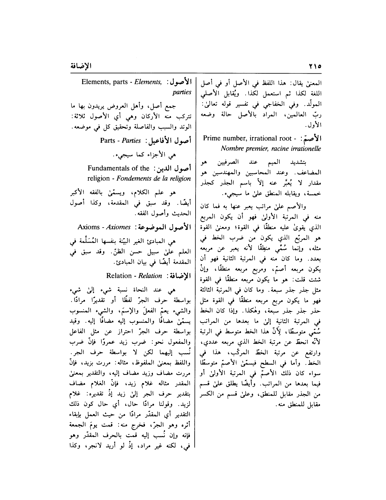 [ في الفرنسية] Elements ،parties