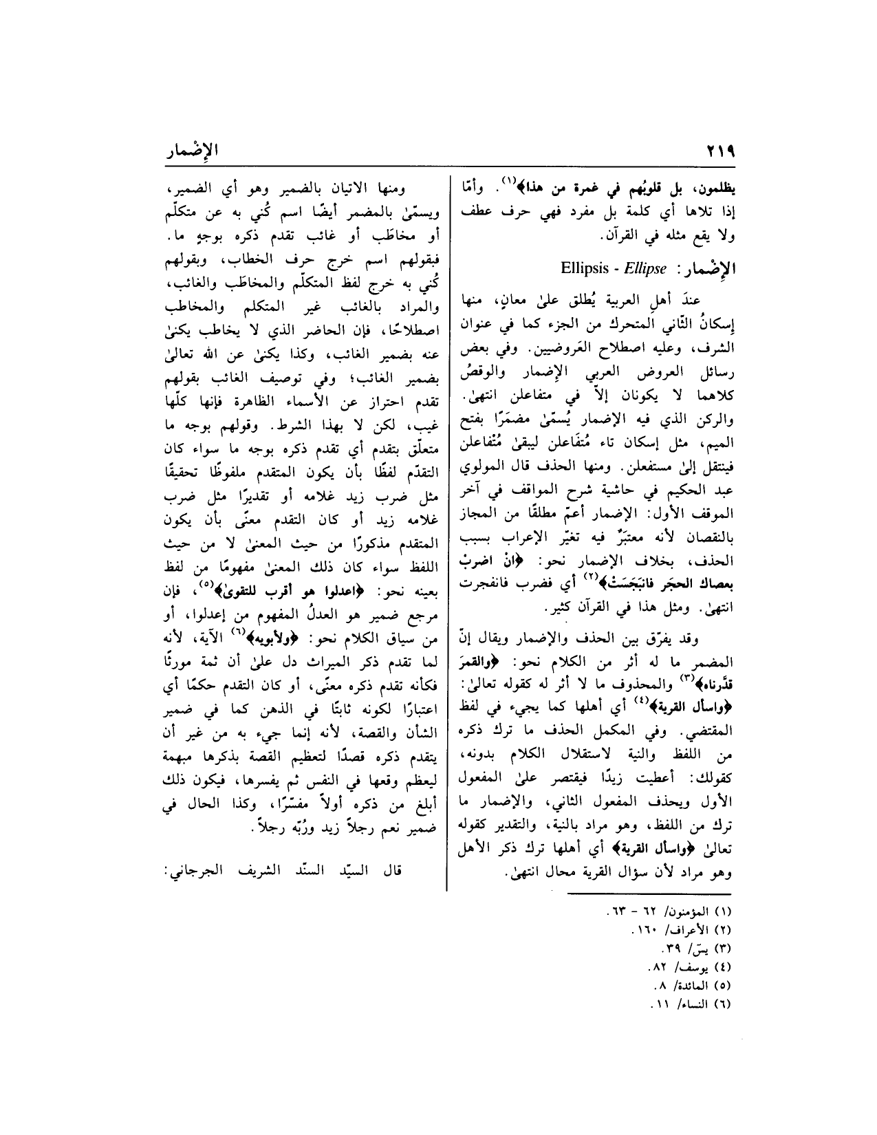 قال السيّد السّند الشريف الجرجاني:
