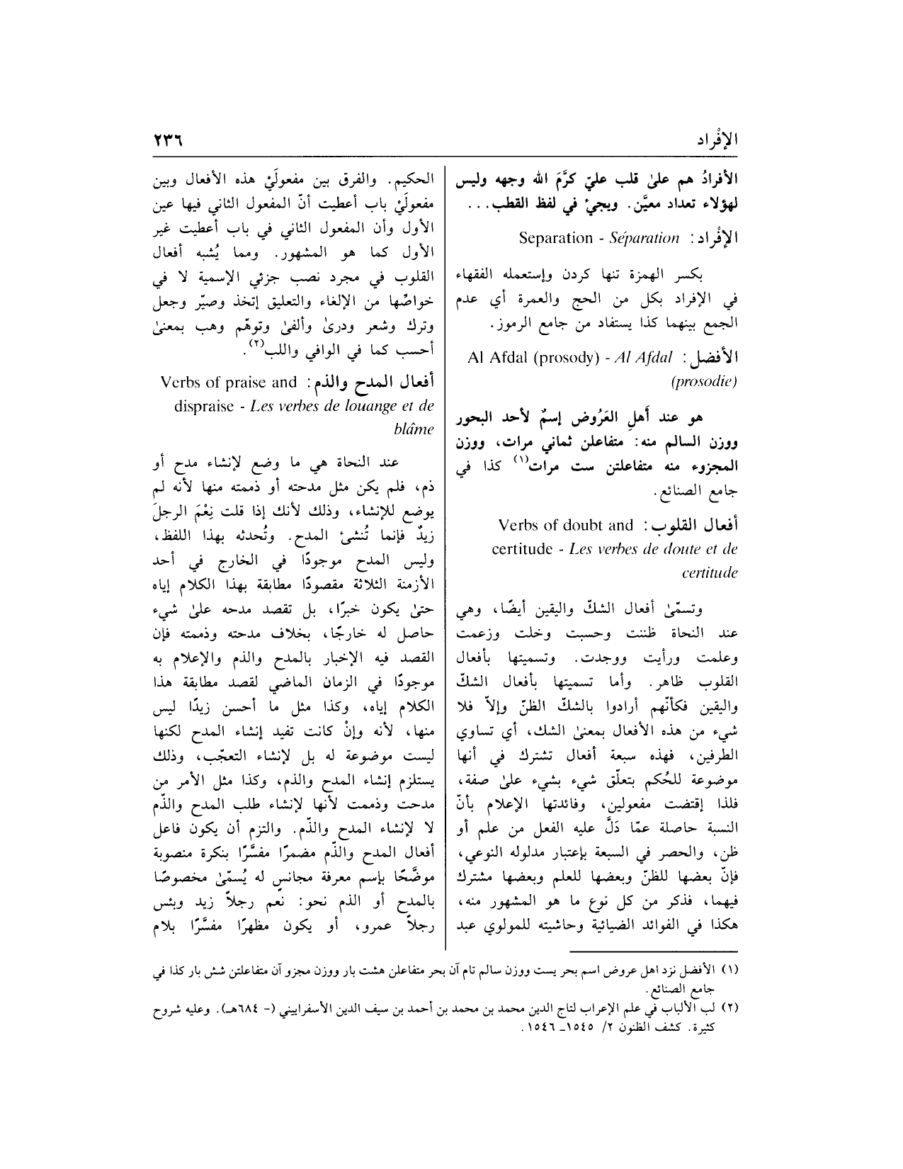 (1) الأفضل نزد اهل عروض اسم بحريست ووزن سالم تام آن بحر متفاعلن هشت بار ووزن مجزو آن متفاعلتن شش بار كذا في جامع الصنائع.