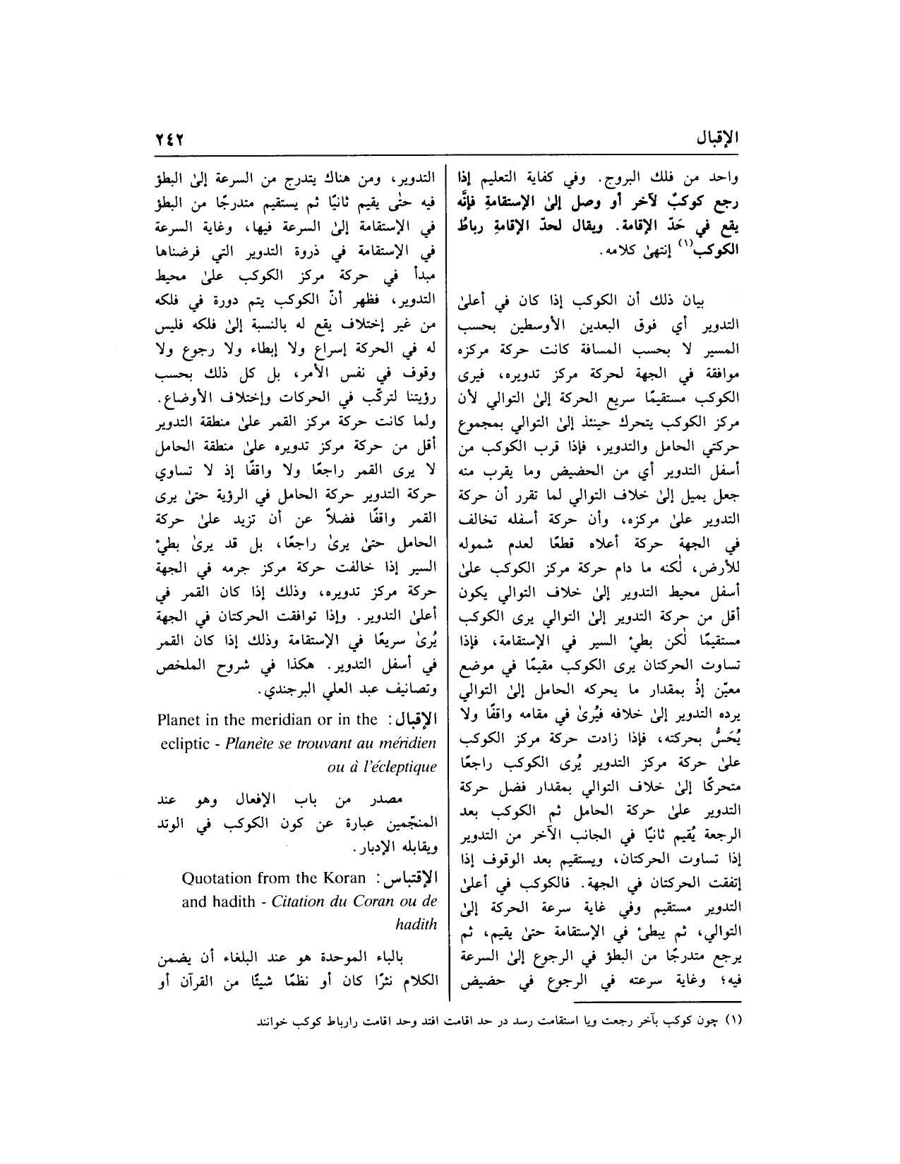 (1) چون كوكب بآخر رجعت ويا استقامت رسد در حد اقامت افتد وحد اقامت را رباط كوكب خوانند