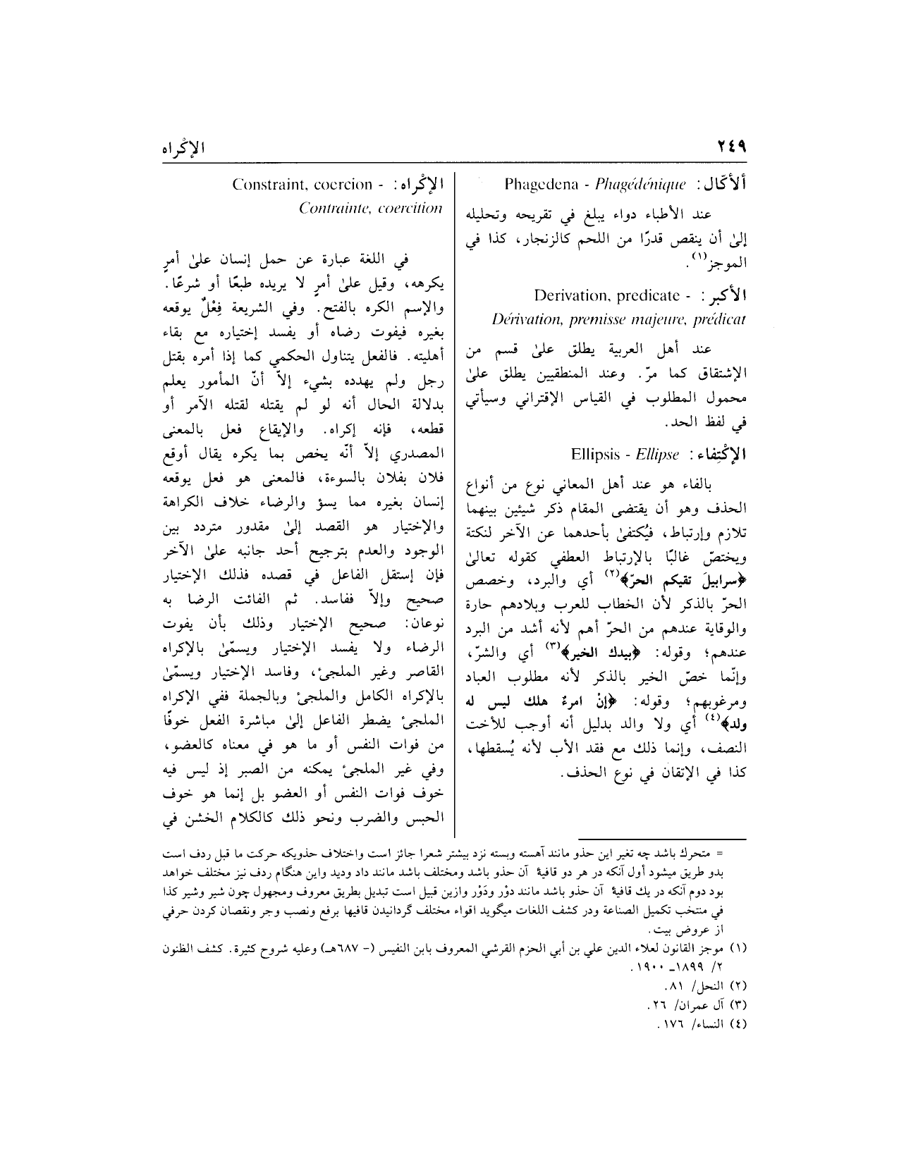 [ في الفرنسية] Derivation ،premisse majeure ،predicat