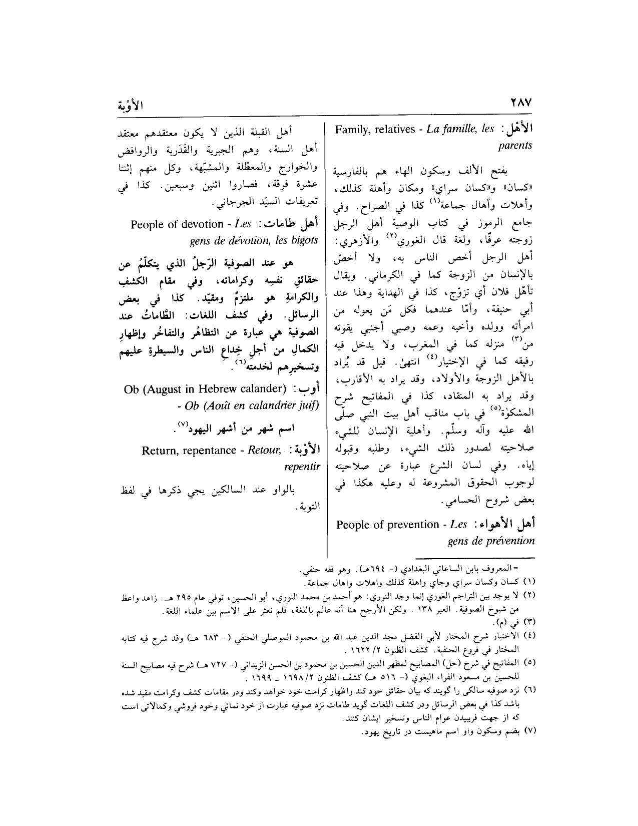 (1) كسان وكسان سراي وجاي واهلة كذلك واهلات واهال جماعة.