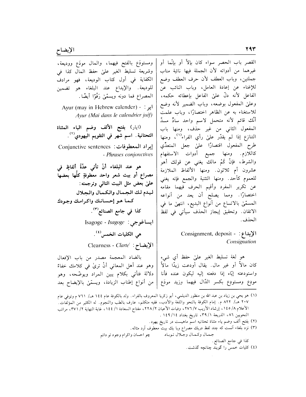 (1) هو يحي بن زياد بن عبد الله بن منظور الديلمي، أبو زكريا المعروف بالفراء. ولد بالكوفة عام 144 هـ/ 761 م وتوفي عام 207 هـ/ 822 م. إمام الكوفة بالنحو واللغة والأدب، فقيه متكلم، عارف بالطب والنجوم. له الكثير من المؤلفات.