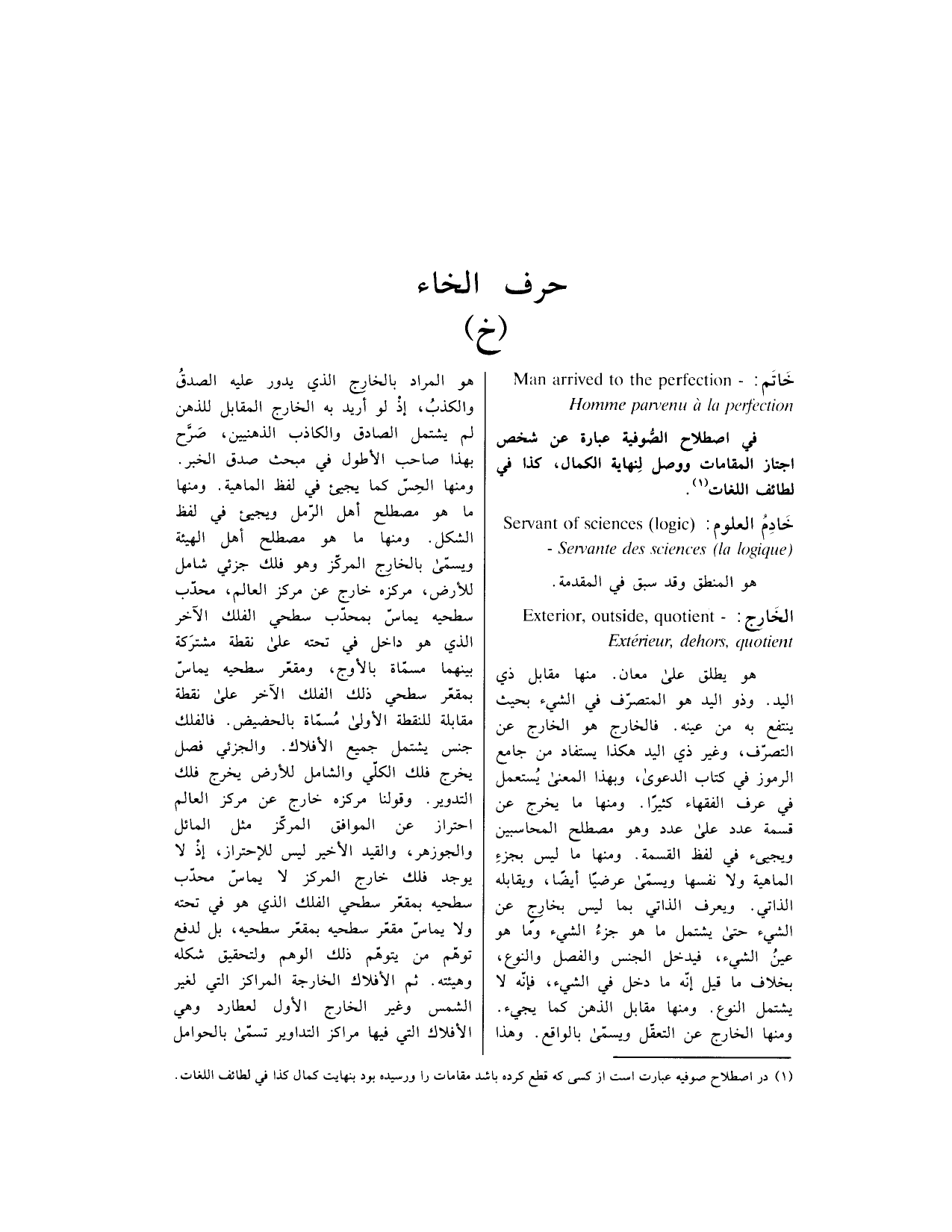 [ في الفرنسية] Exterieur ،dehors ،quotient