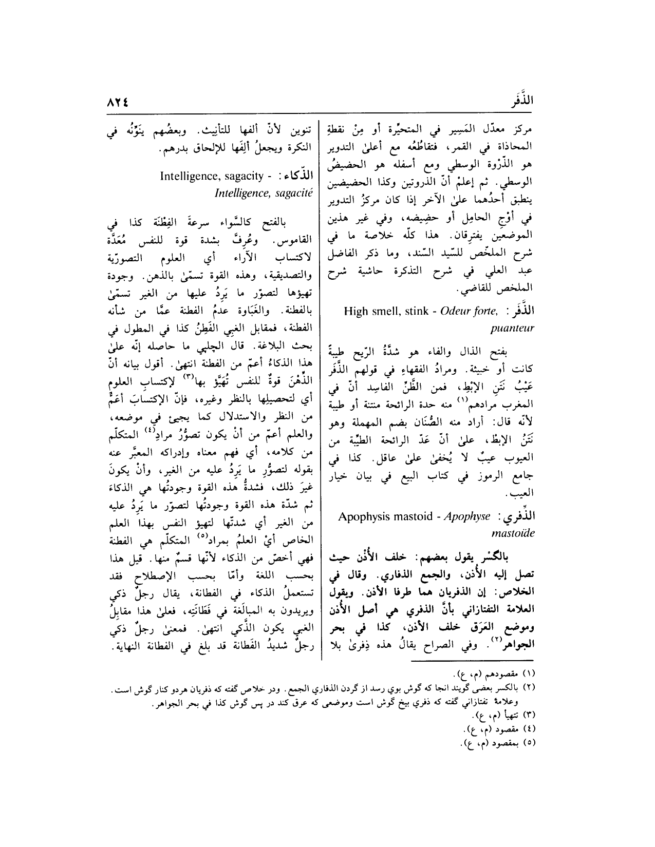 بالفتح كالسّواء سرعة الفطنة كذا في القاموس. وعرف بشدة قوة للنفس معدّة لاكتساب الآراء أي العلوم التصوّرية والتصديقية، وهذه القوة تسمّى بالذهن. وجودة تهيؤها لتصوّر ما يرد عليها من الغير تسمّى بالفطنة. والغباوة عدم الفطنة عمّا من شأنه الفطنة، فمقابل الغبي الفطن كذا في المطول في بحث البلاغة. قال الچلپي ما حاصله إنّه على هذا الذكاء أعمّ من الفطنة انتهى. أقول بيانه أنّ الذّهن قوة للنفس تهيّؤ بها «3» لاكتساب العلوم أي لتحصيلها بالنظر وغيره، فإنّ الاكتساب أعمّ من النظر والاستدلال كما يجيء في موضعه، والعلم أعمّ من أن يكون تصوّر مراد «4» المتكلّم من كلامه، أي فهم معناه وإدراكه المعبّر عنه بقوله لتصوّر ما يرد عليه من الغير، وأن يكون غير ذلك، فشدّة هذه القوة وجودتها هي الذكاء ثم شدّة هذه القوة وجودتها لتصوّر ما يرد عليه من الغير أي شدّتها لتهيؤ النفس بهذا العلم الخاص أي العلم بمراد «5» المتكلّم هي الفطنة فهي أخصّ من الذكاء لأنّها قسم منها. قيل هذا بحسب اللغة وأمّا بحسب الاصطلاح فقد تستعمل الذكاء في الفطانة، يقال رجل ذكي ويريدون به المبالغة في فطانته، فعلى هذا مقابل الغبي يكون الذّكي انتهى. فمعنى رجل ذكي رجل شديد الفطانة قد بلغ في الفطانة النهاية.