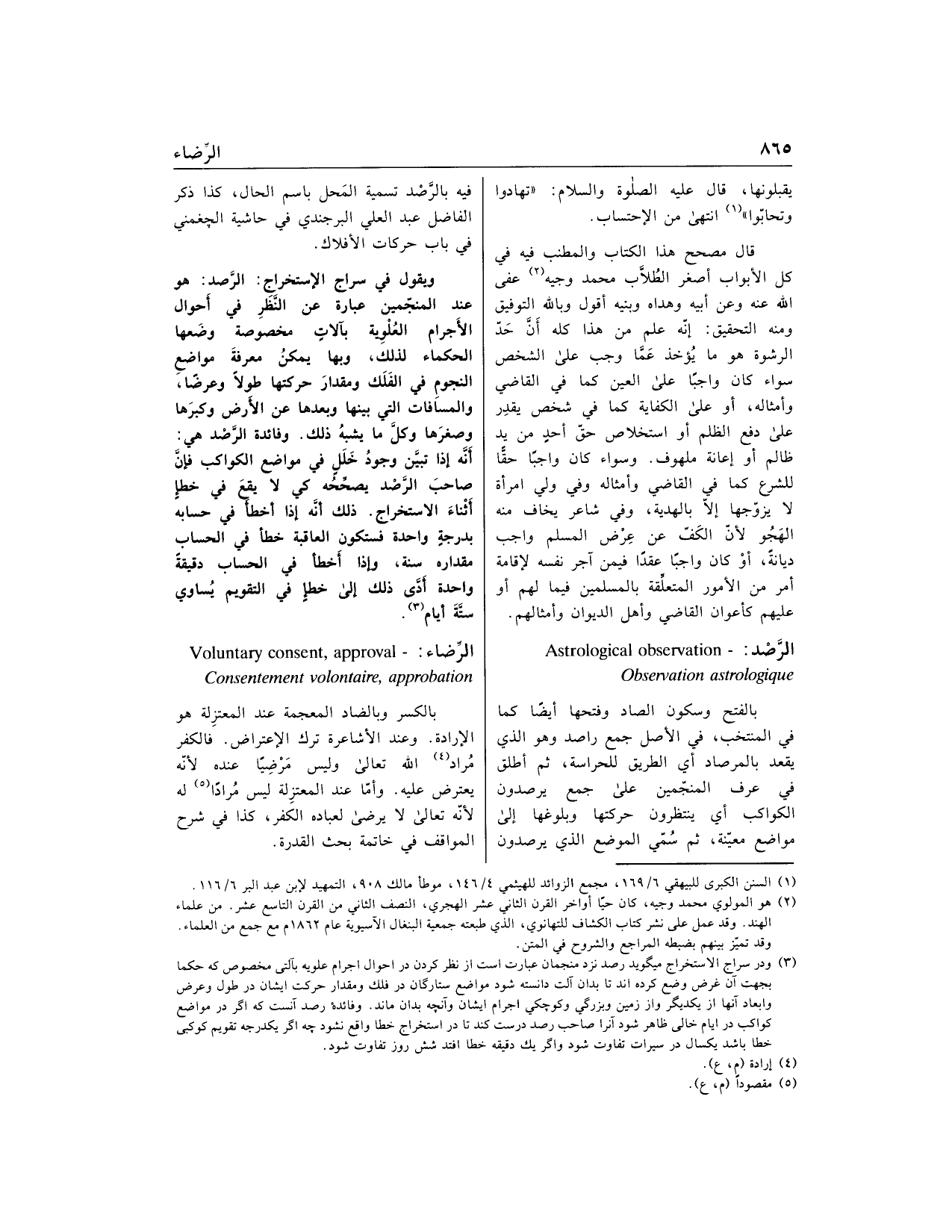 (2) هو المولوي محمد وجيه، كان حيا أواخر القرن الثاني عشر الهجري، النصف الثاني من القرن التاسع عشر. من علماء الهند. وقد عمل على نشر كتاب الكشاف للتهانوي، الذي طبعته جمعية البنغال الآسيوية عام 1862 م مع جمع من العلماء.