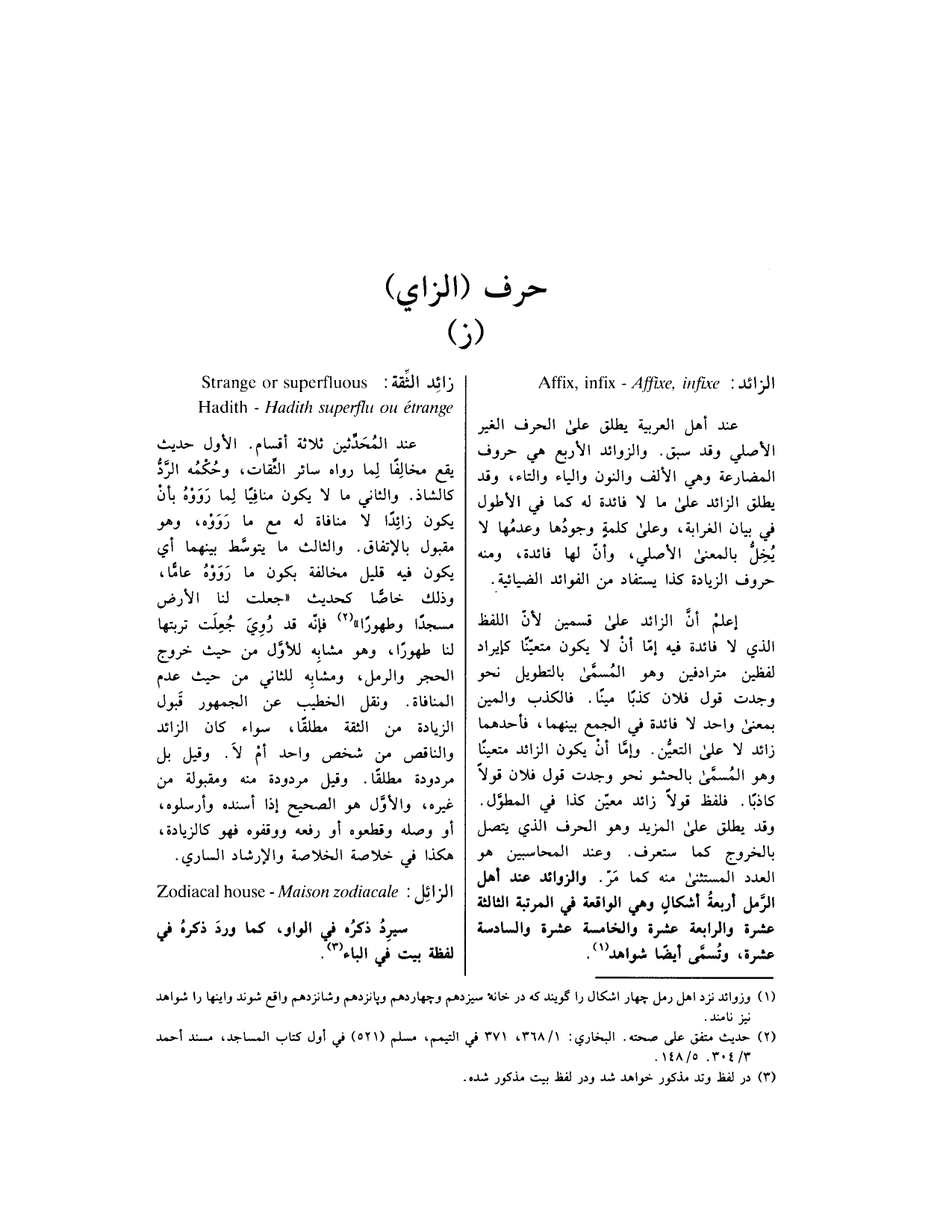 (3) در لفظ وتد مذكور خواهد شد ودر لفظ بيت مذكور شده.