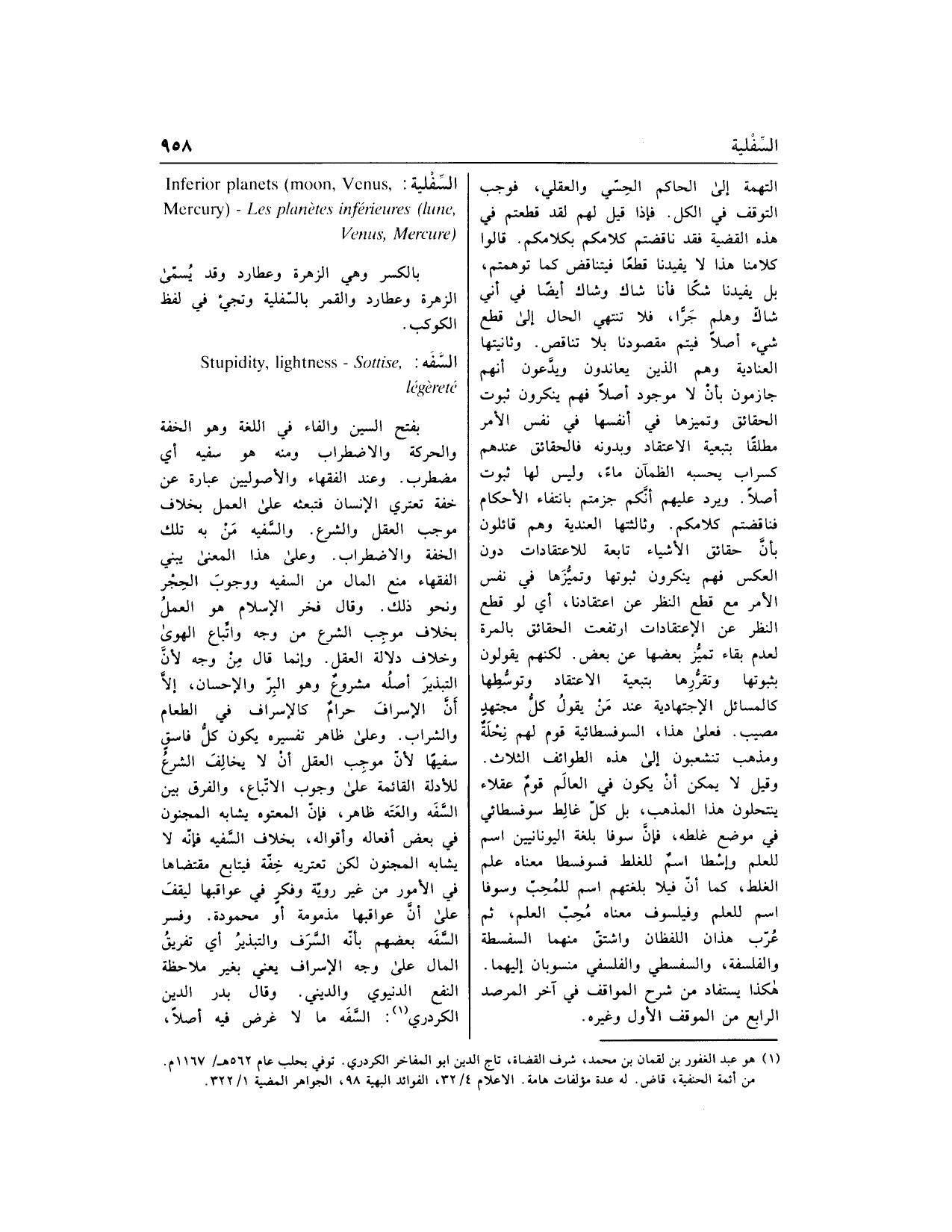 (1) هو عبد الغفور بن لقمان بن محمد، شرف القضاة، تاج الدين ابو المفاخر الكردري. توفي بحلب عام 562 هـ/ 1167 م.